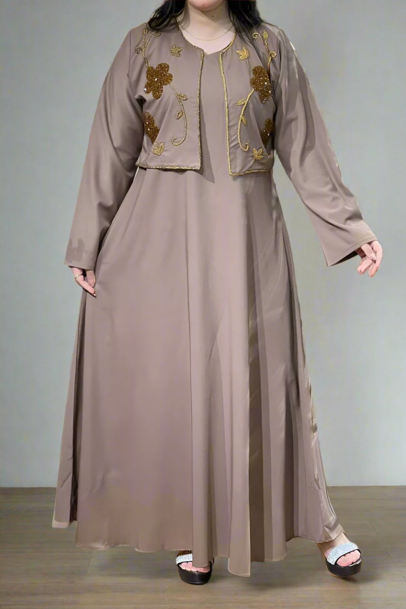 - عباية رقيقه مكونة من قطعتين عباية كت وجاكيت بكم قصير