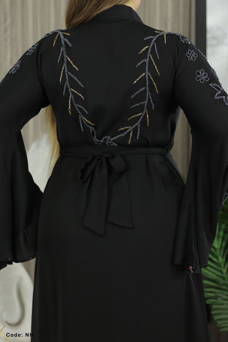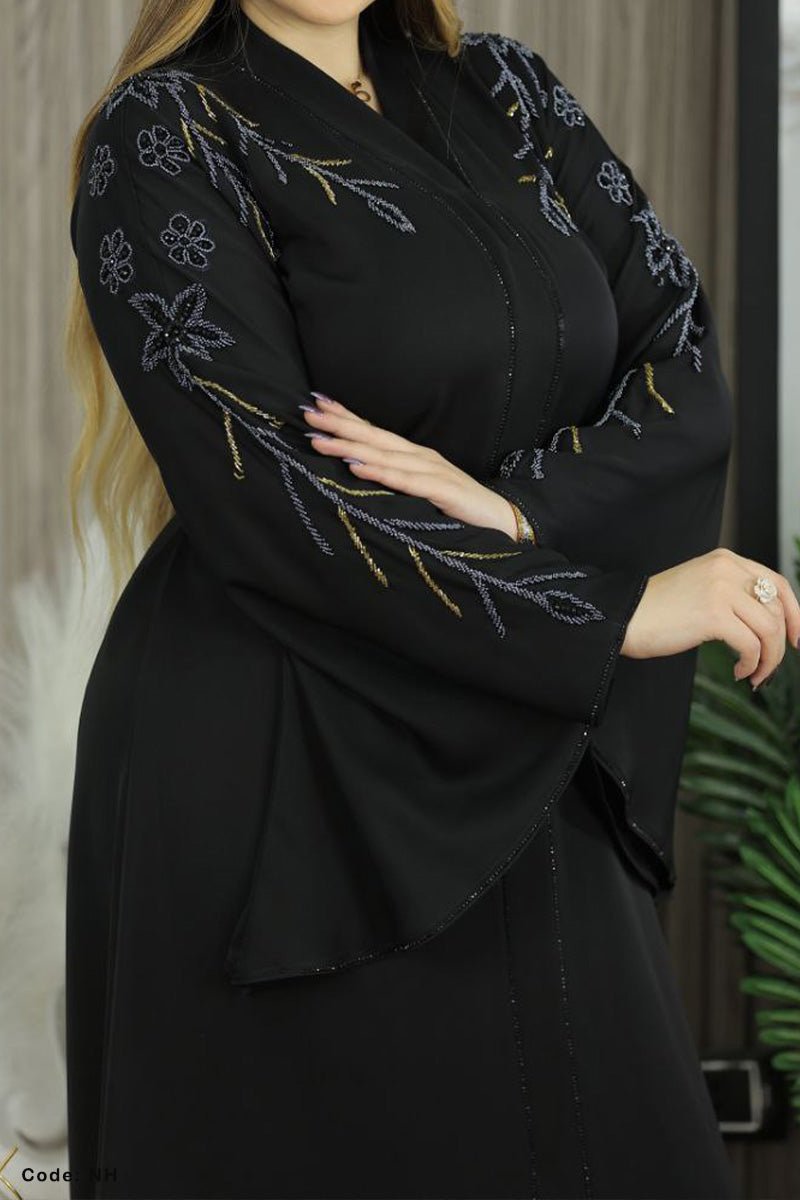 - عباية فخمة باكمام واسعة وحزام جانبي متصل لضبط المقاس