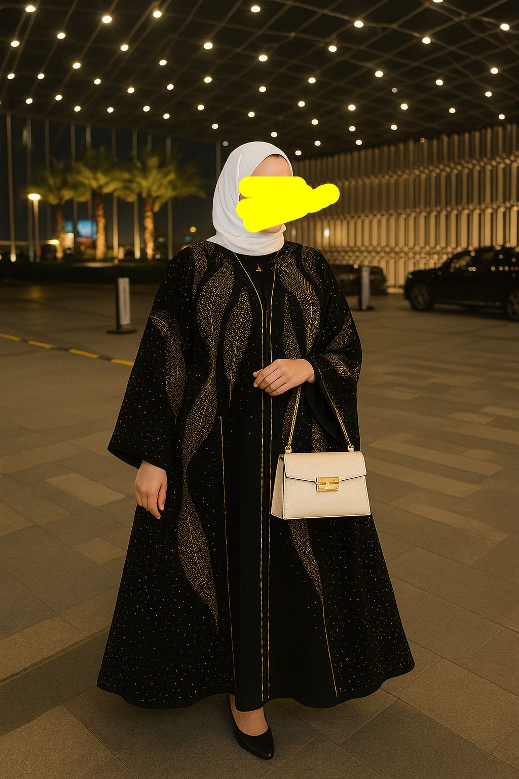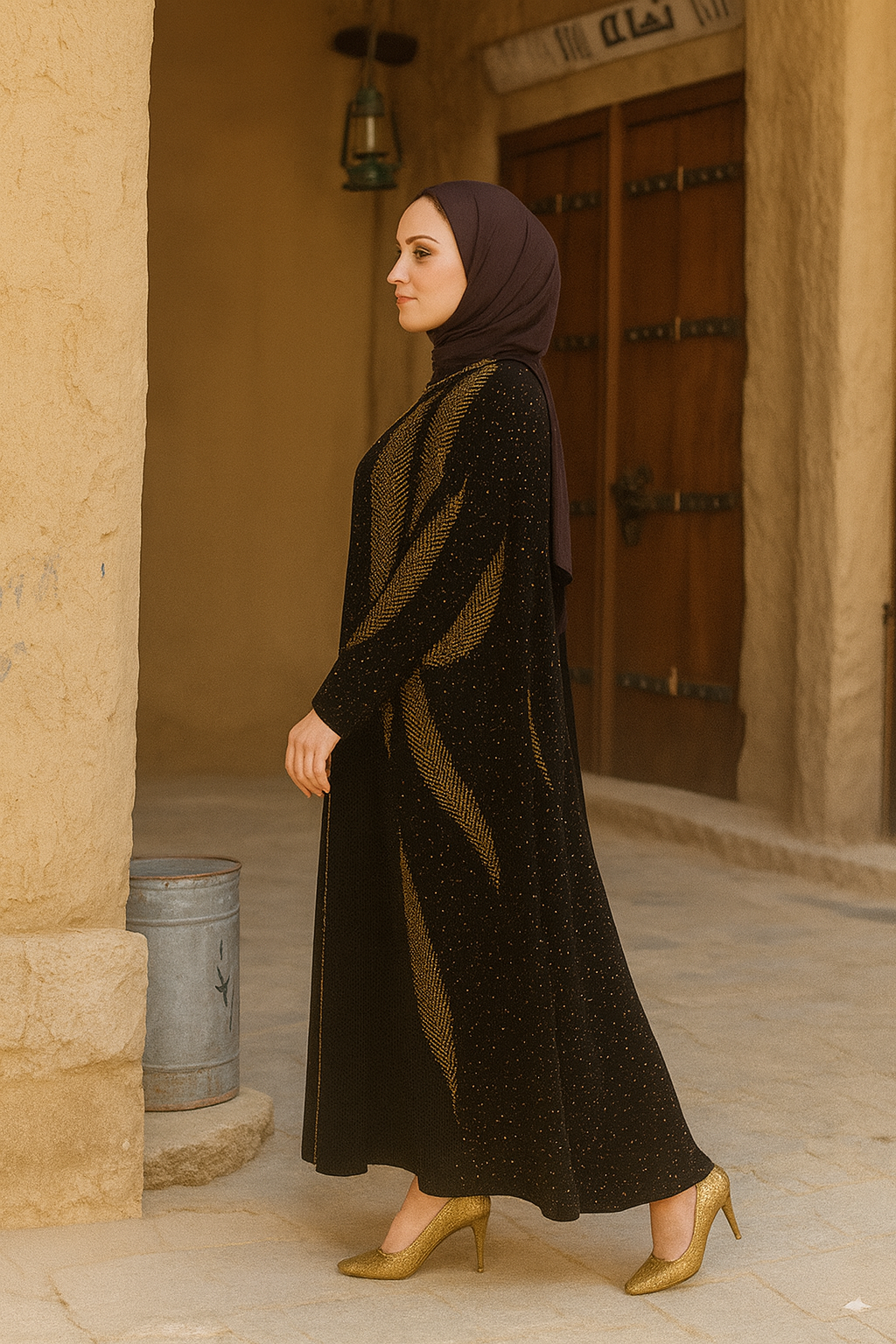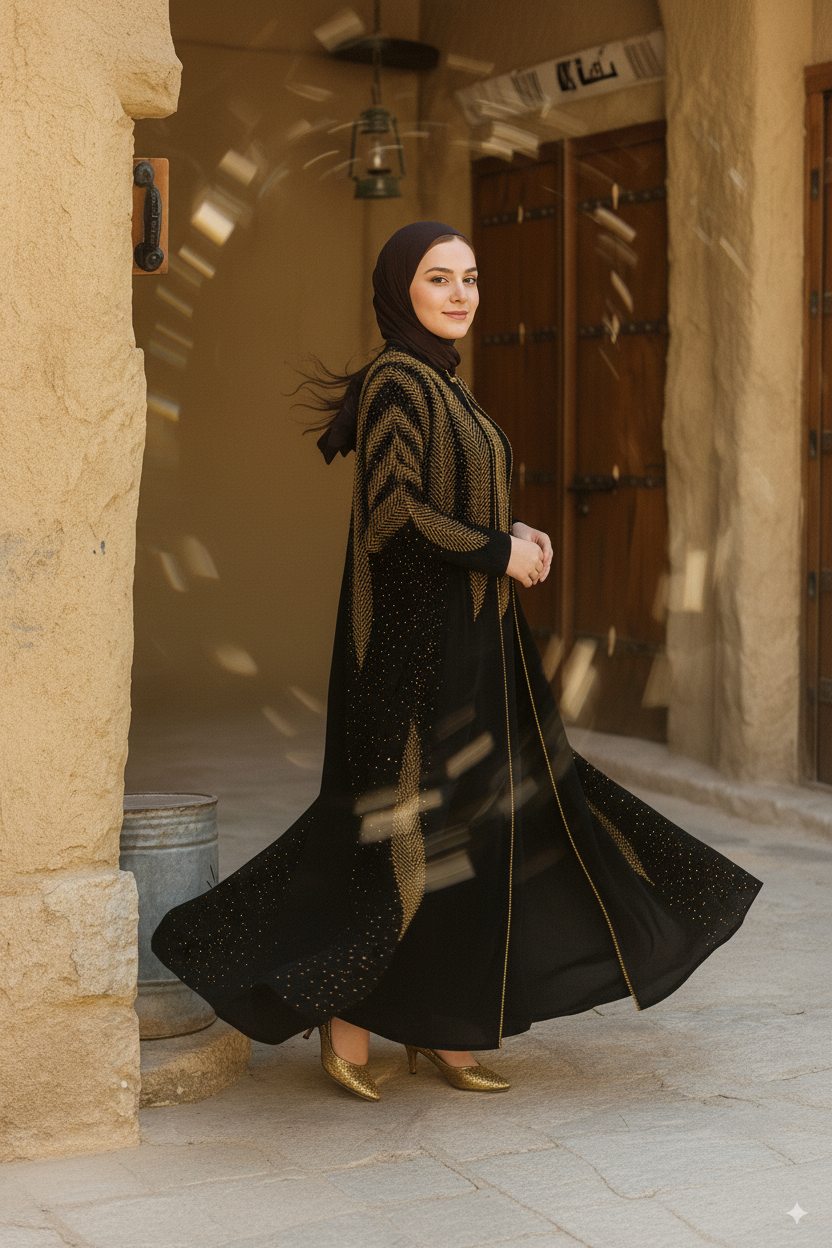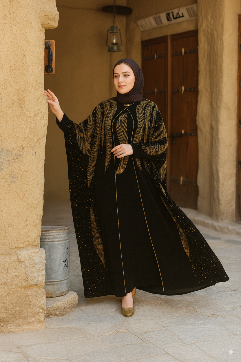 - اللون: أسود مع تطريز ذهبي