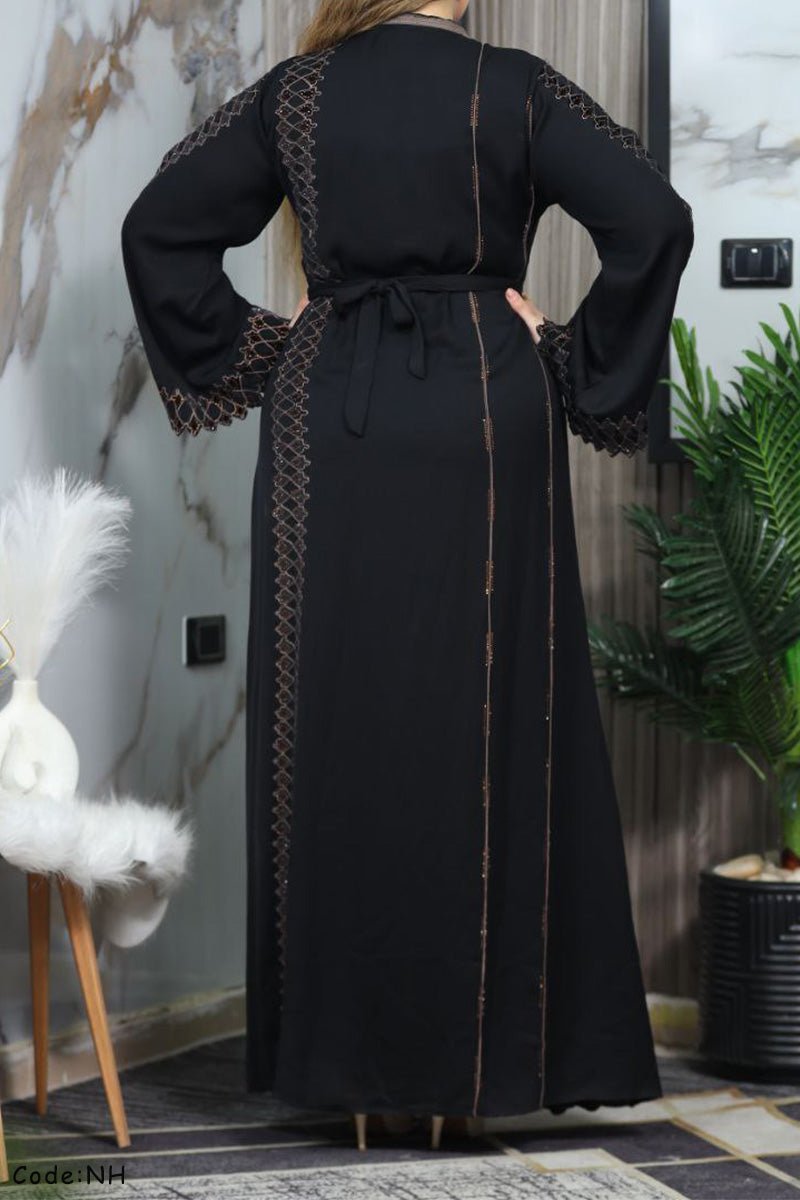 - العباية مطرزة علي الصدر والاكمام وبطول العباية من الامام والخلف