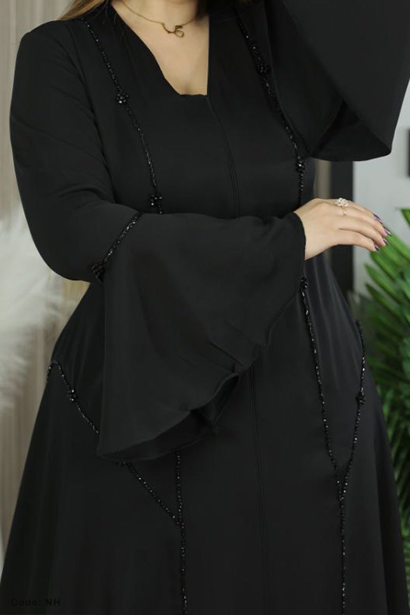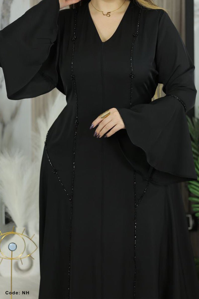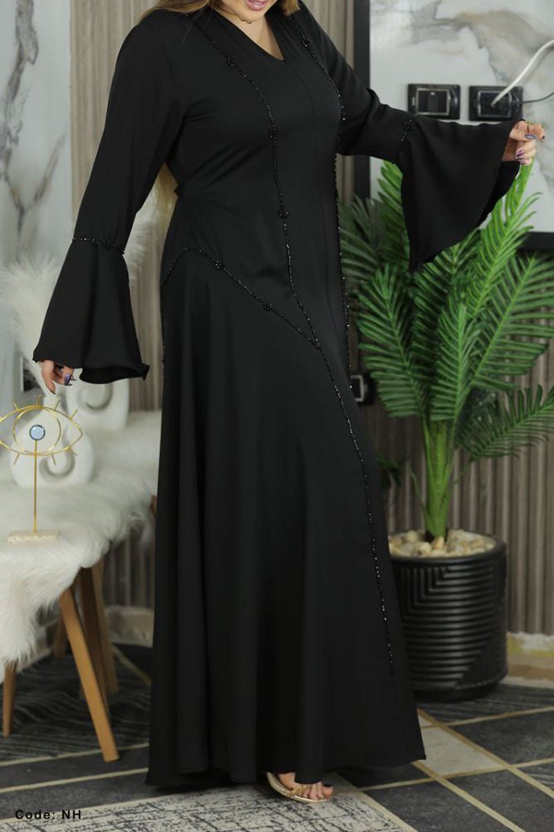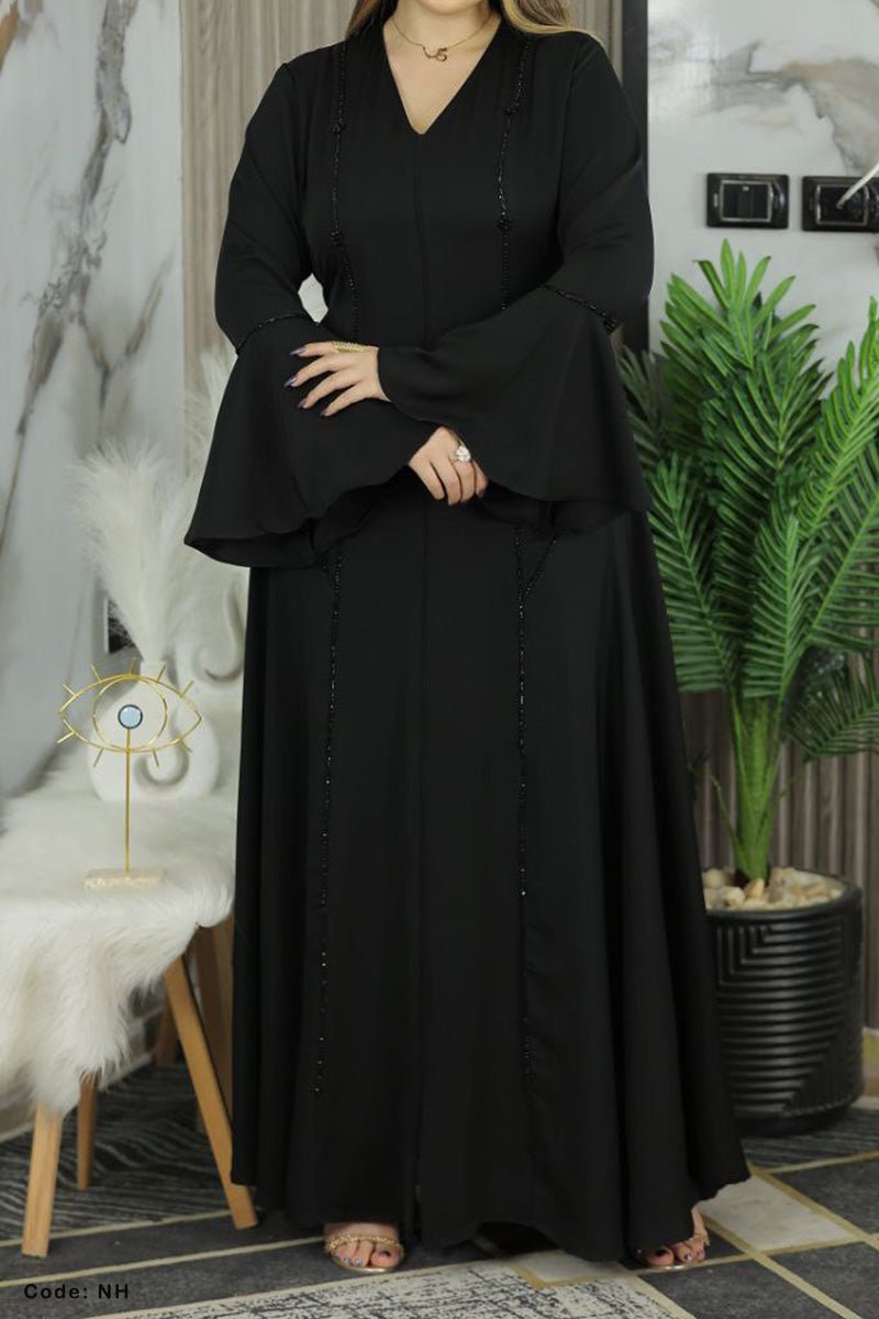 - عباية فخمة باكمام كلوش وحزام جانبي متصل لضبط المقاس