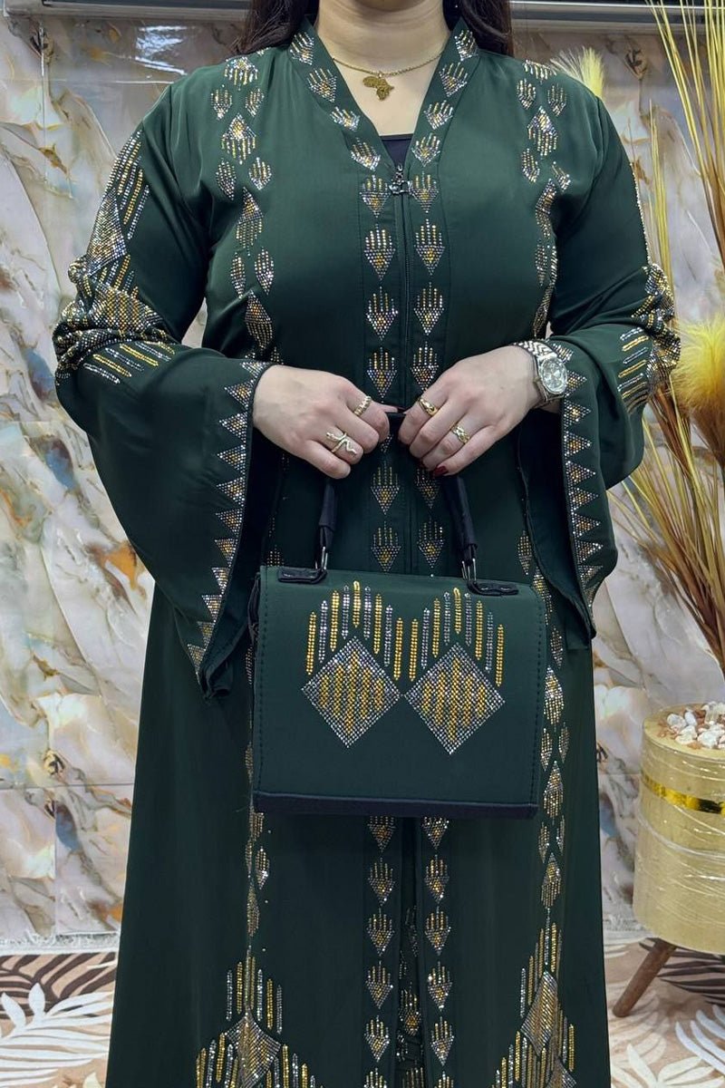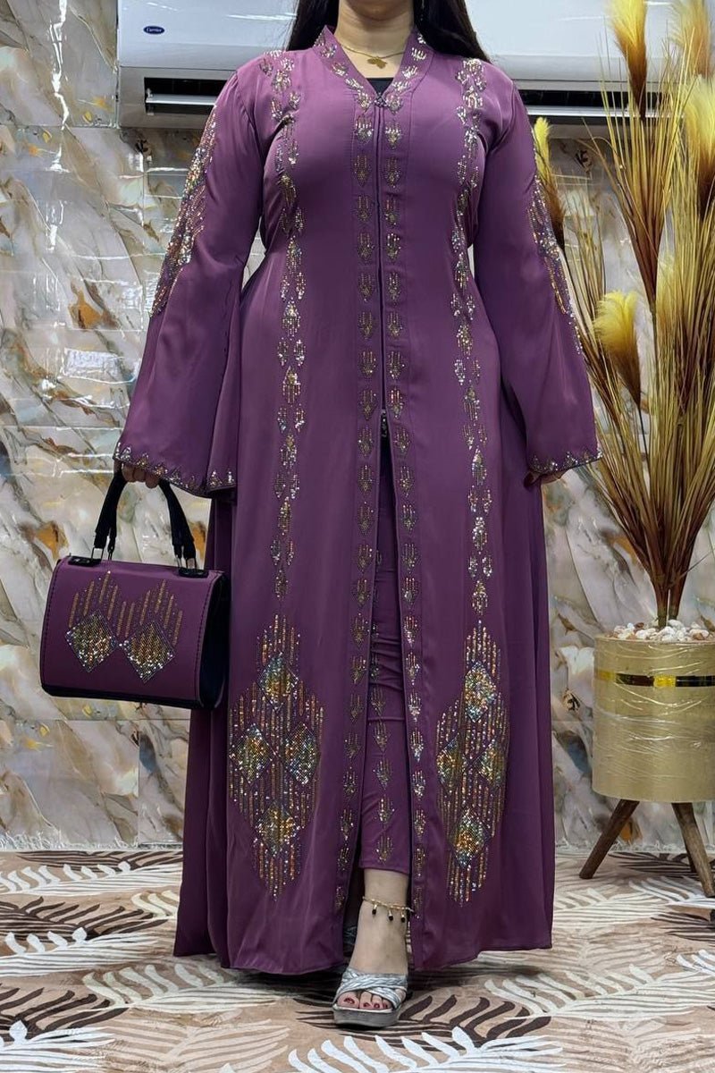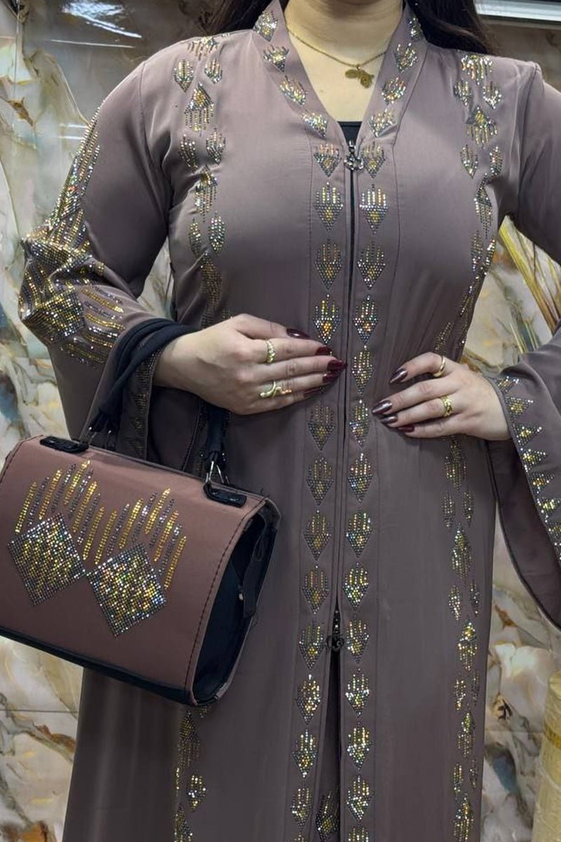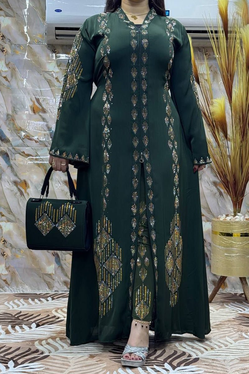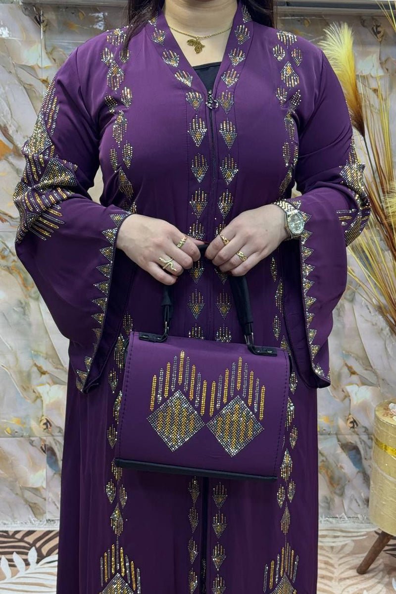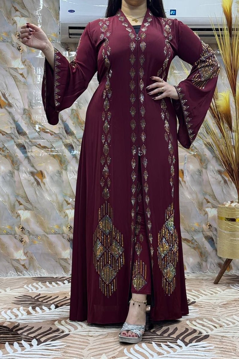 - عباية مكونة من ثلاث قطع عباية مفتوحة وتحتها بنطلون وحقيبة