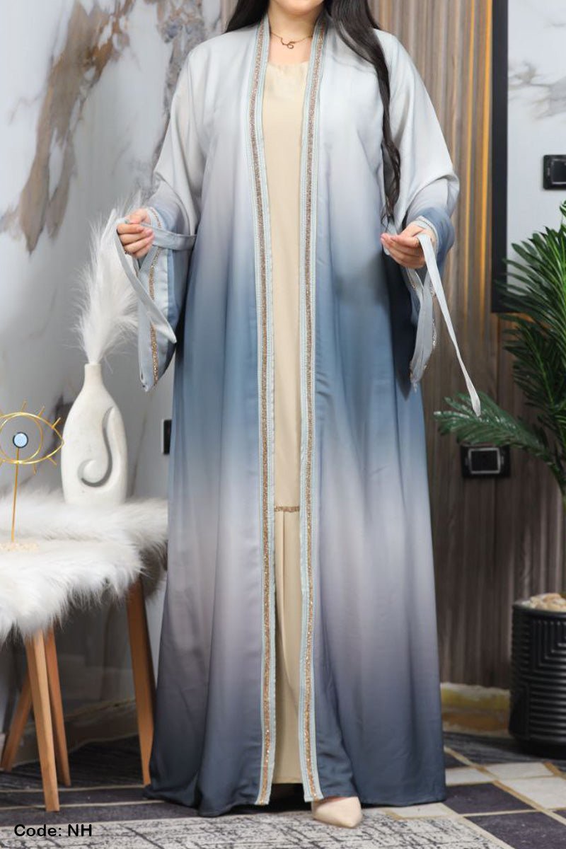 - العباية مطرزة علي الصدر والاكمام وبطول العباية من الامام