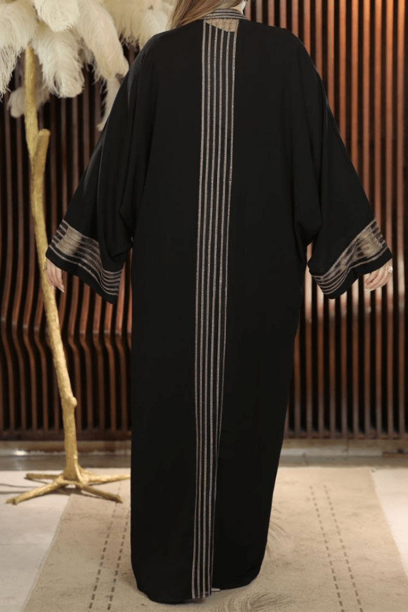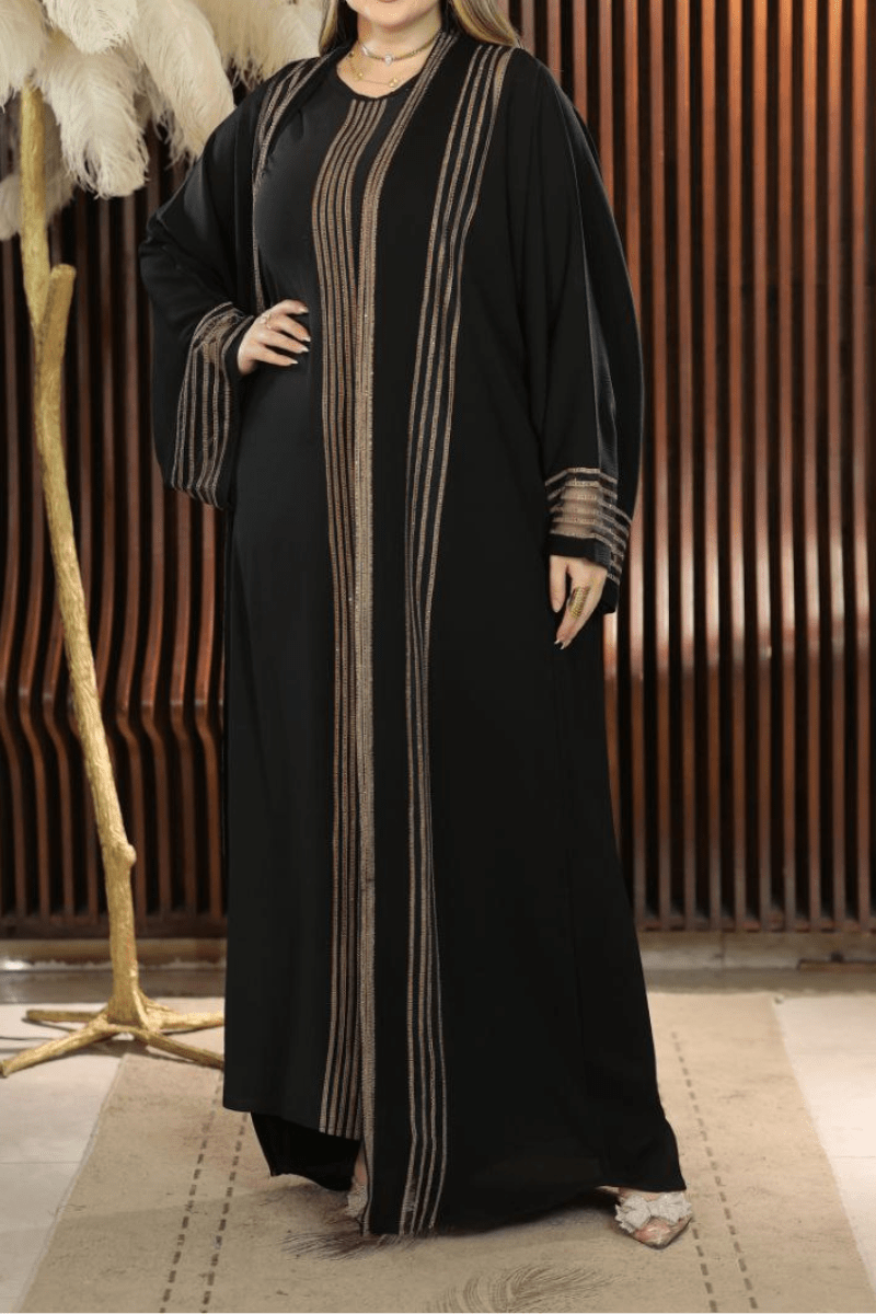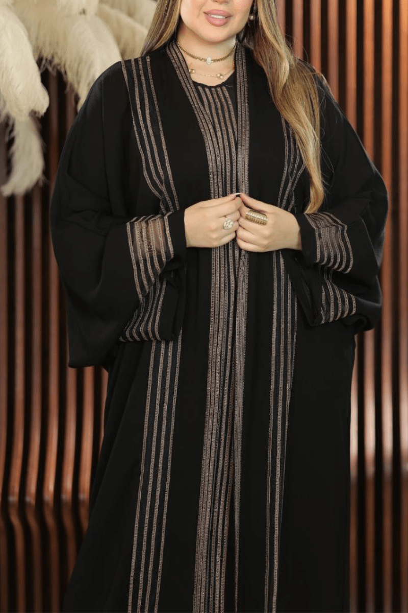 • عباية مكونة من قطعتين بيزك وعباية بكم مفتوحة من الامام