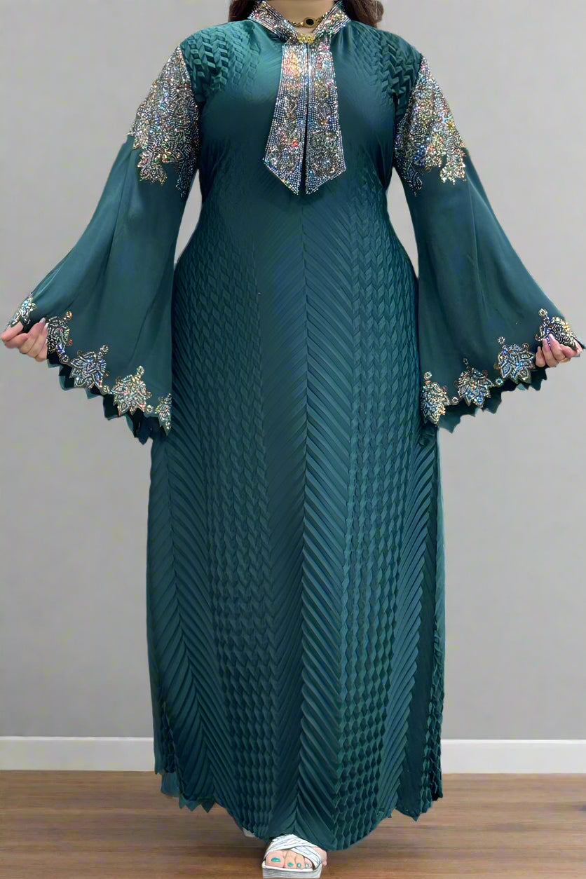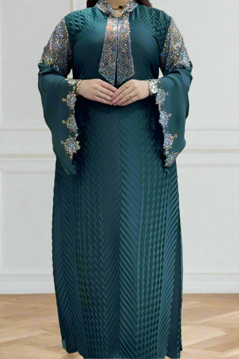 - العباية مطرزة علي الصدر والاكمام والياقة