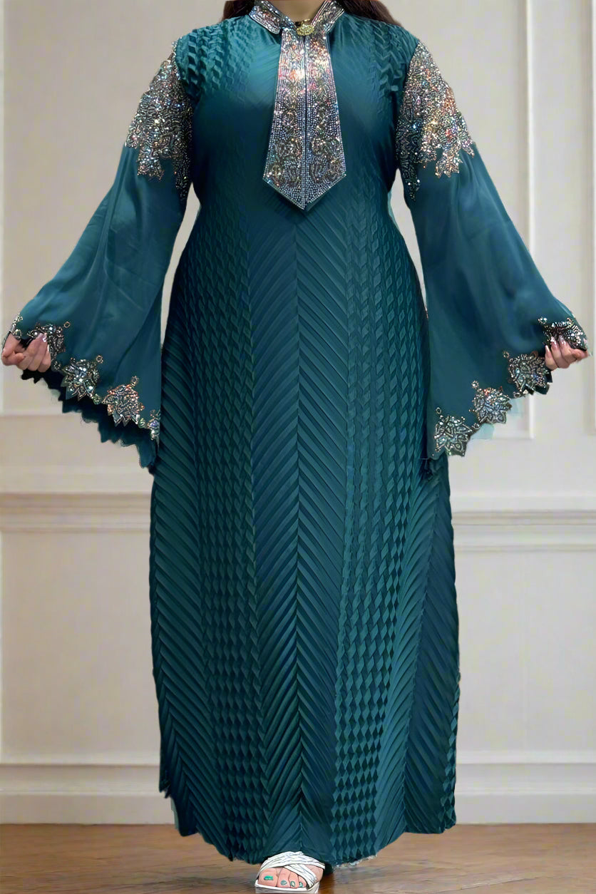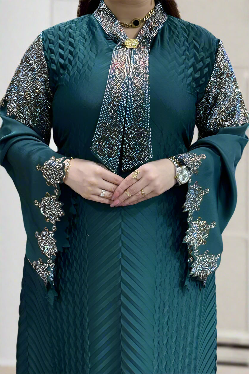 - التطريز باستراس ثابت ولامع وخيوط حرير