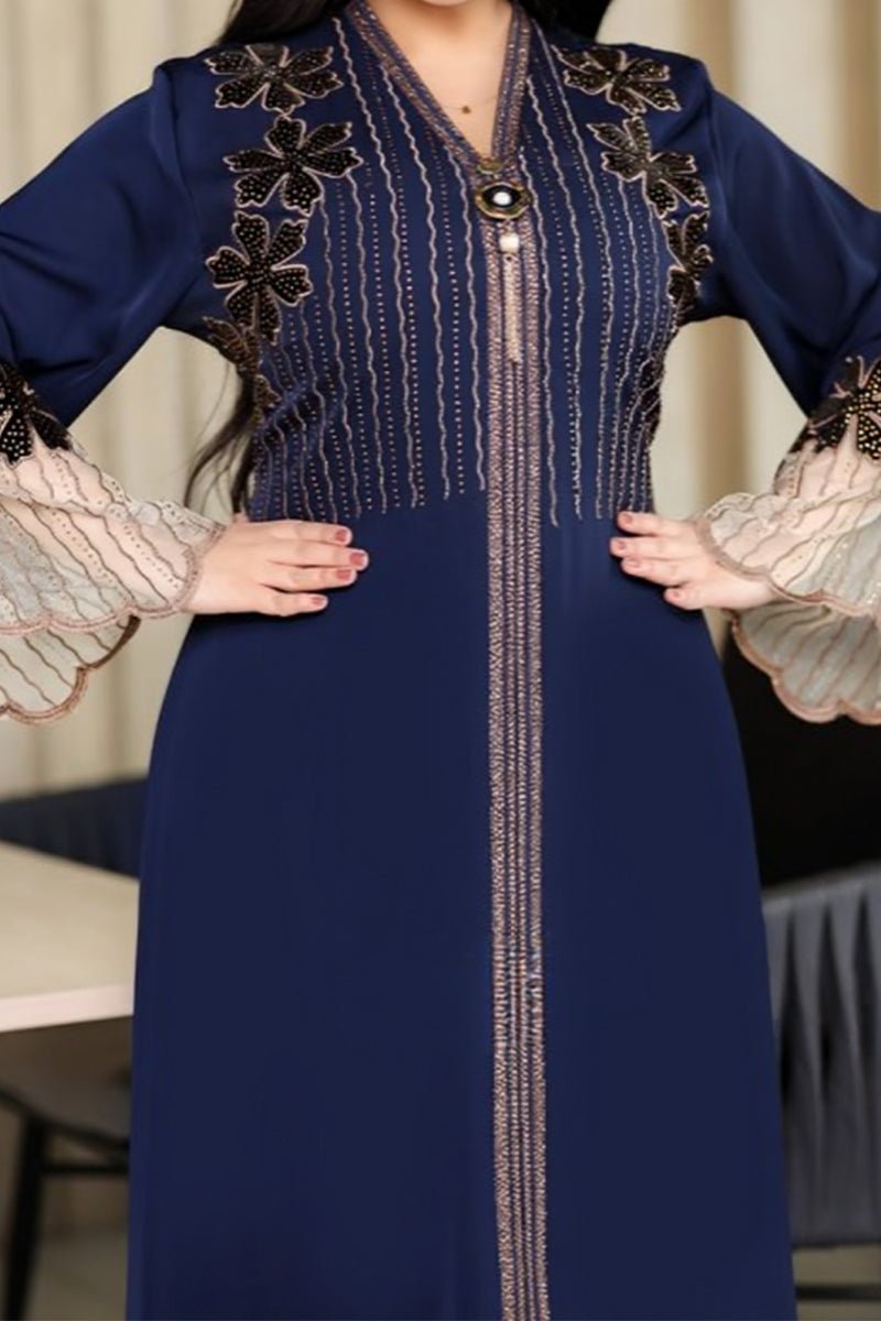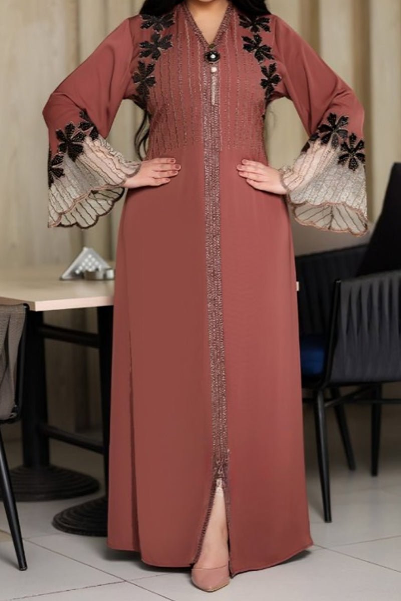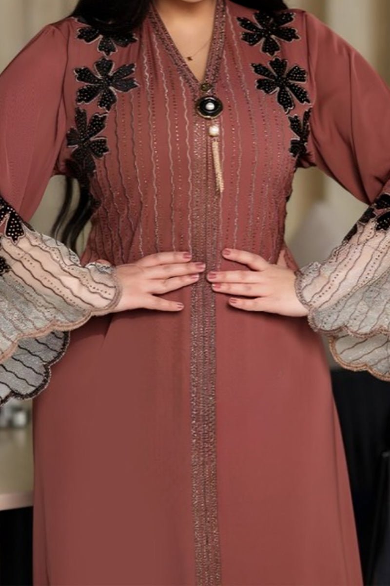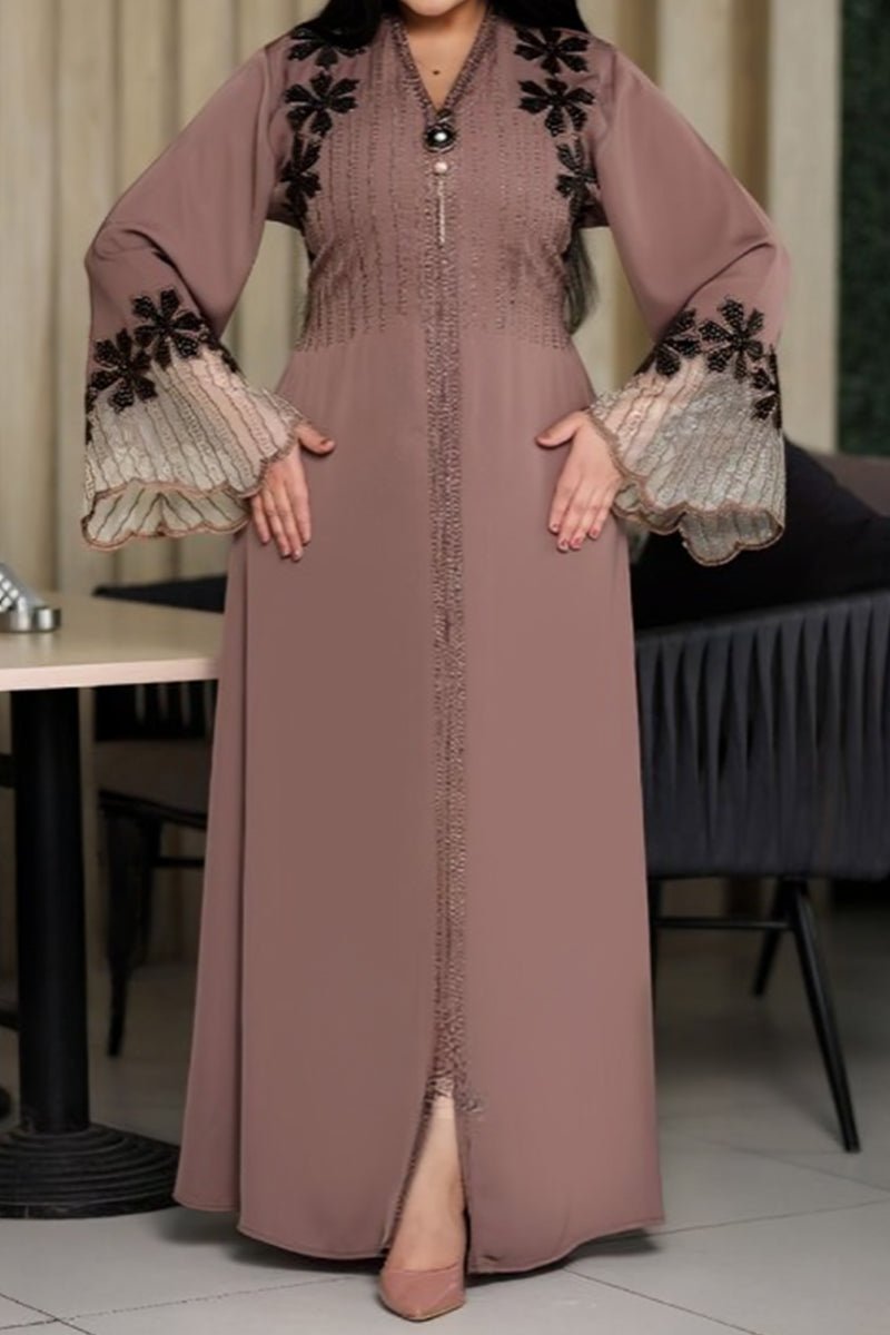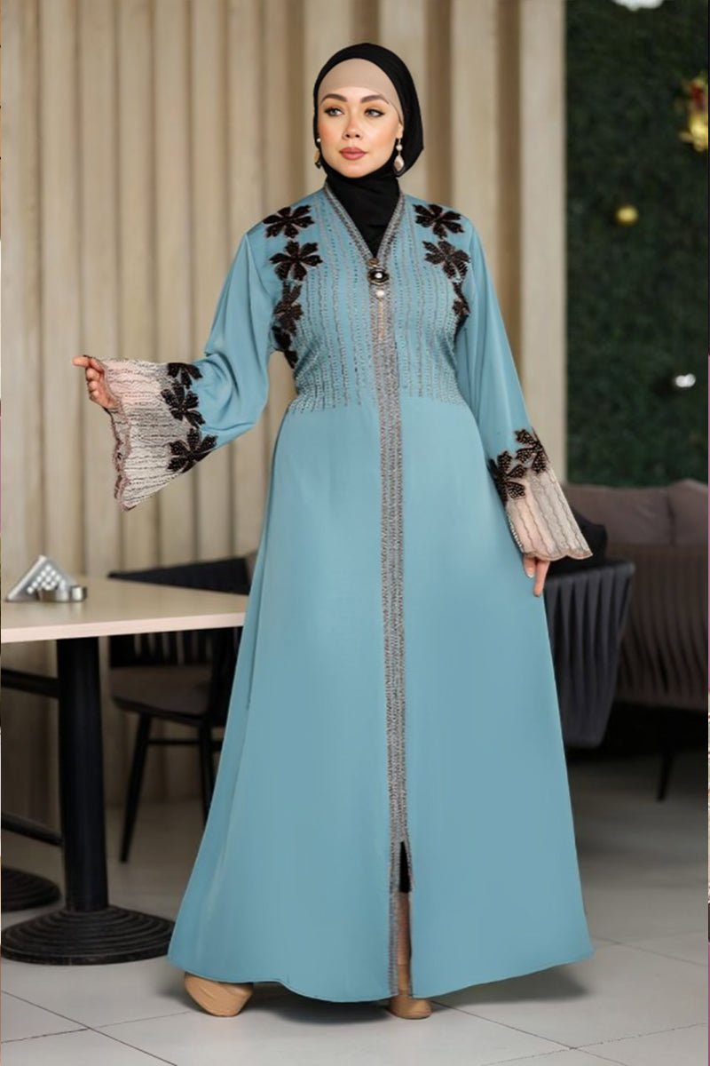 - عباية ذات اكمام واسعه وتطريزات بارزة