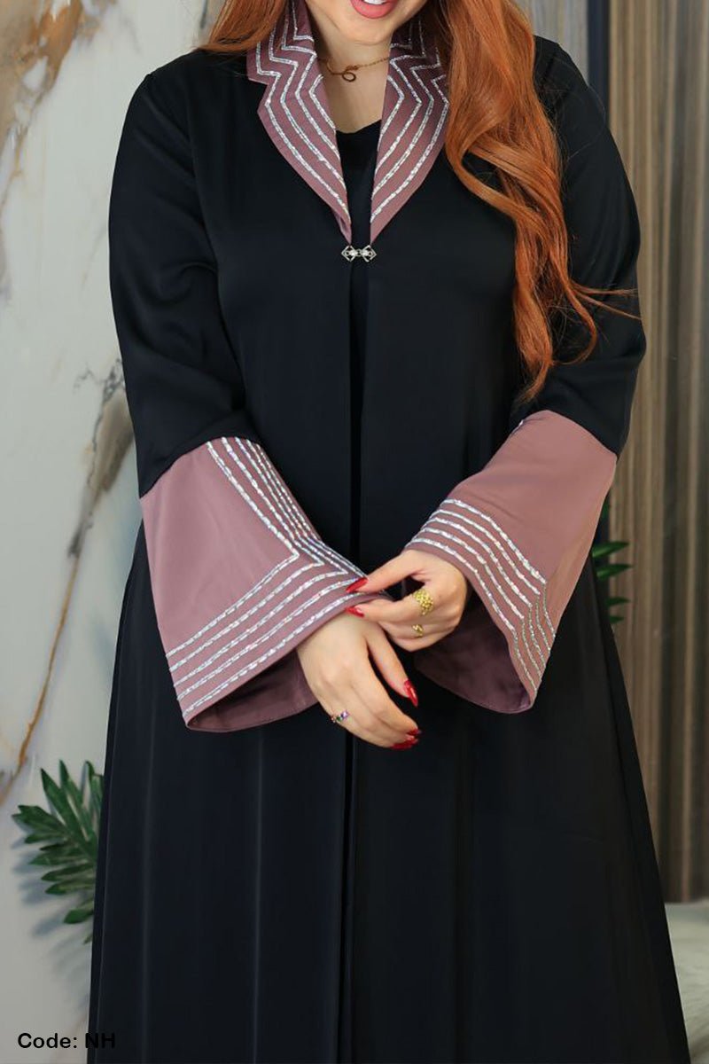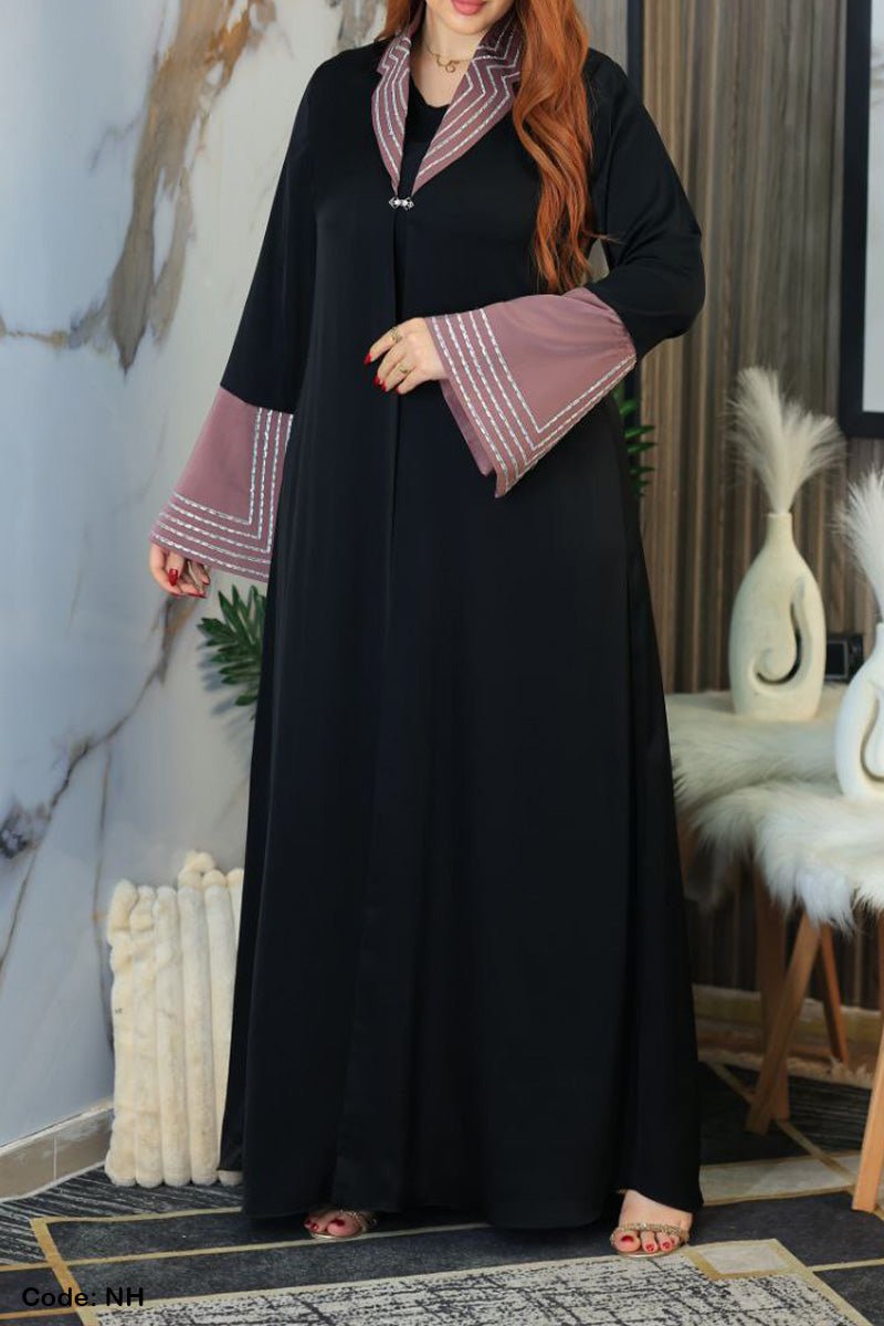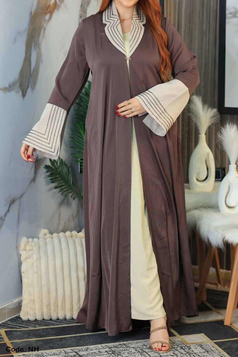 - عباية قطعتين باكمام واسعه مكونة من بيزك بكم وعباية حرير مفتوحة