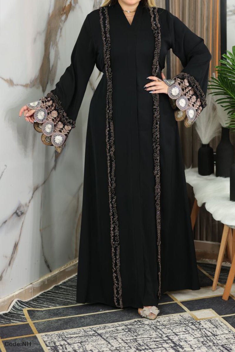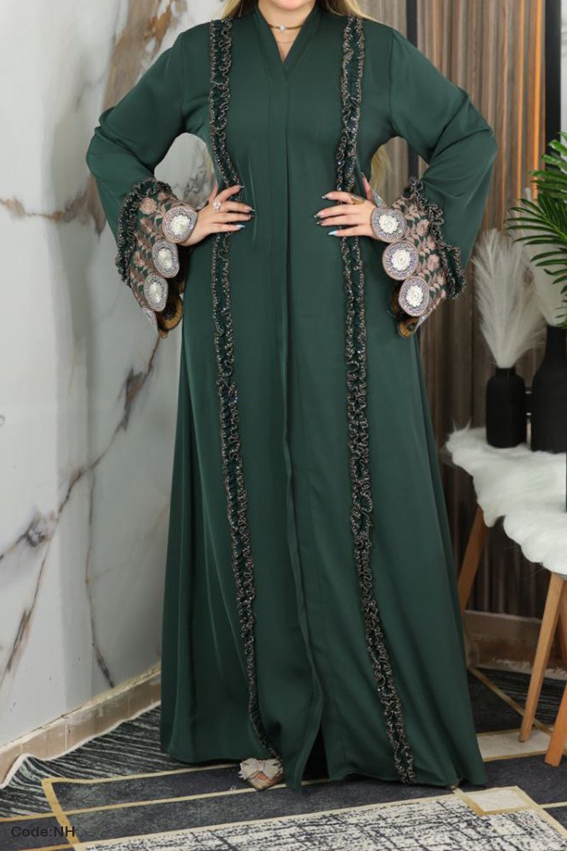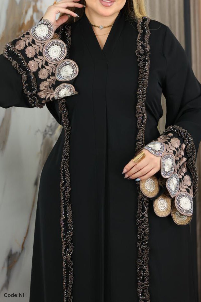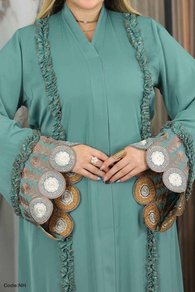 - التطريز علي الصدر والاكمام وبطول العباية من الامام