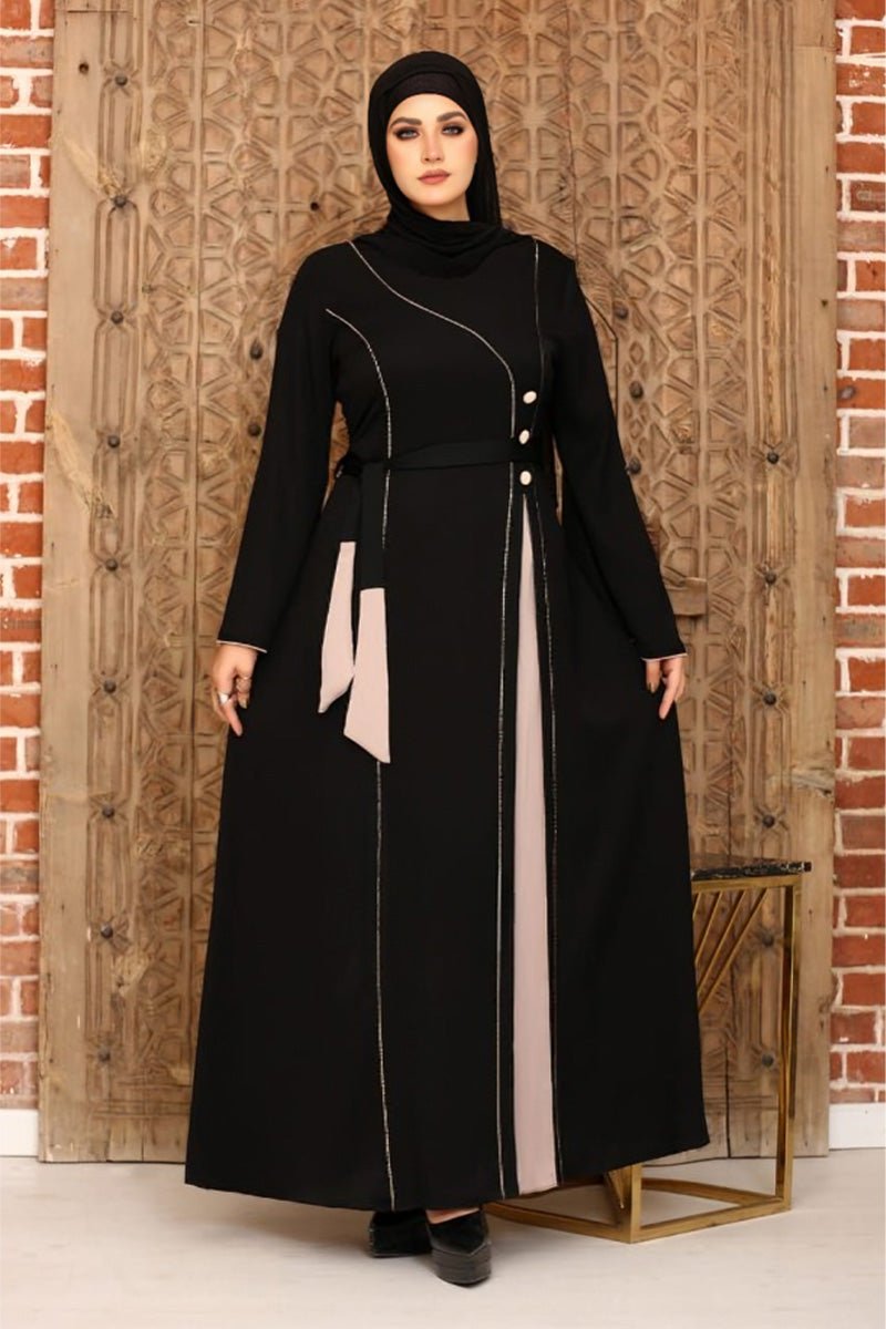 - عباية مطعمة بكلونات لونها مختلف عن لون العباية