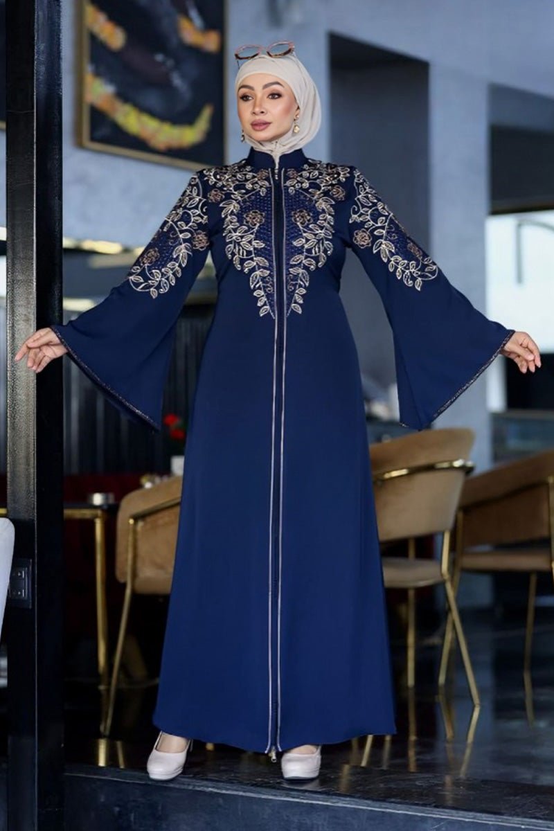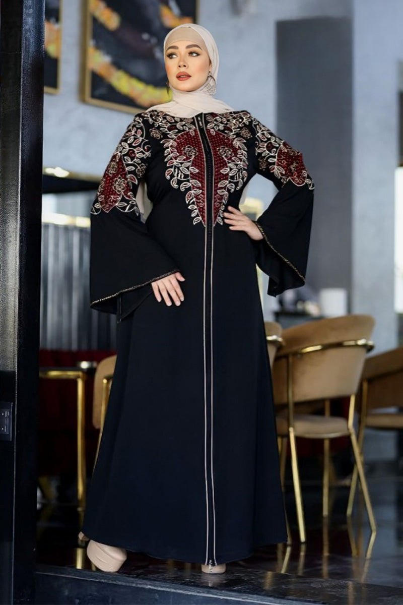 - التطريز : علي الصدر والاكمام وعلي ظهر العباية
