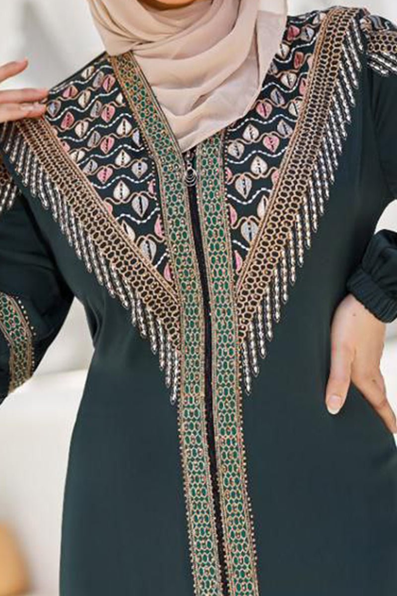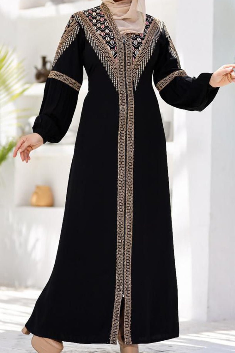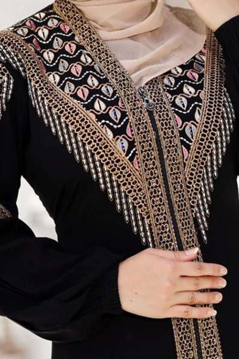 • التطريز : بخيوط عالية الجودة علي الصدر وبطول العباية والاكمام