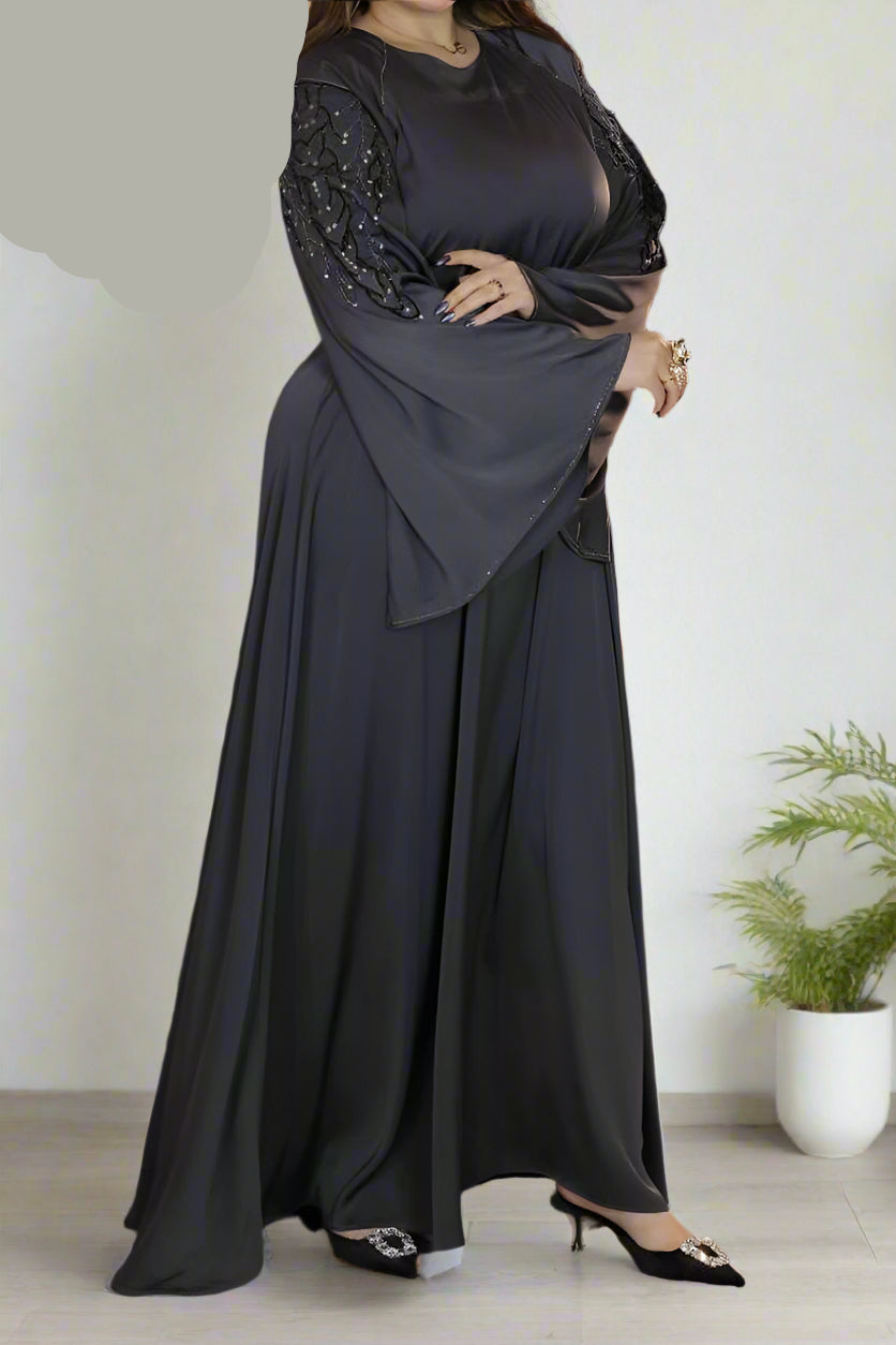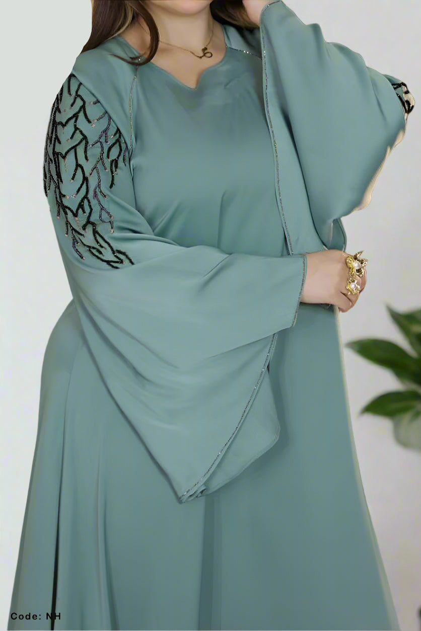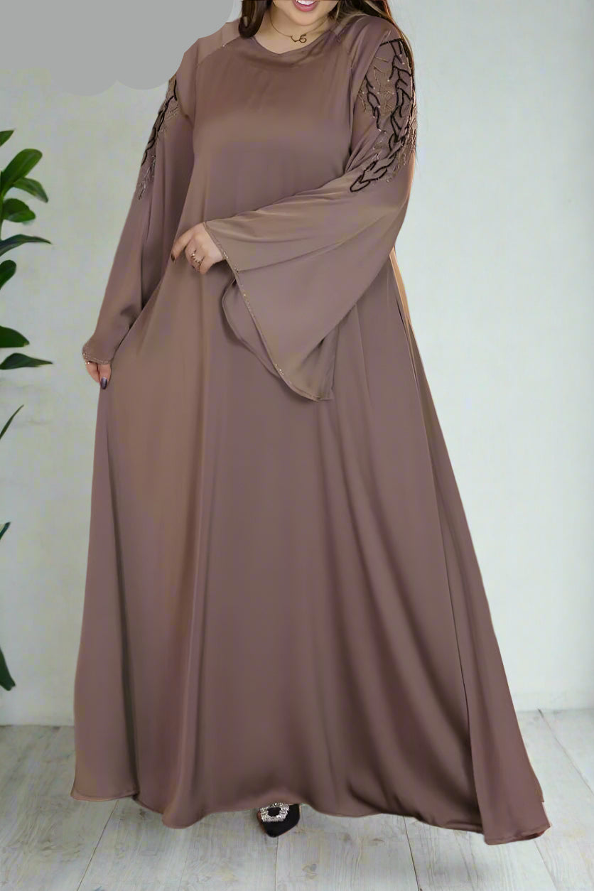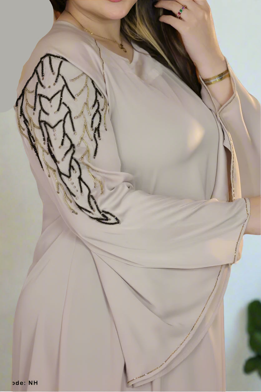 • التطريز : بخيوط حرير واستراس ثابت ولامع