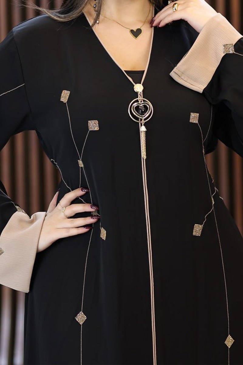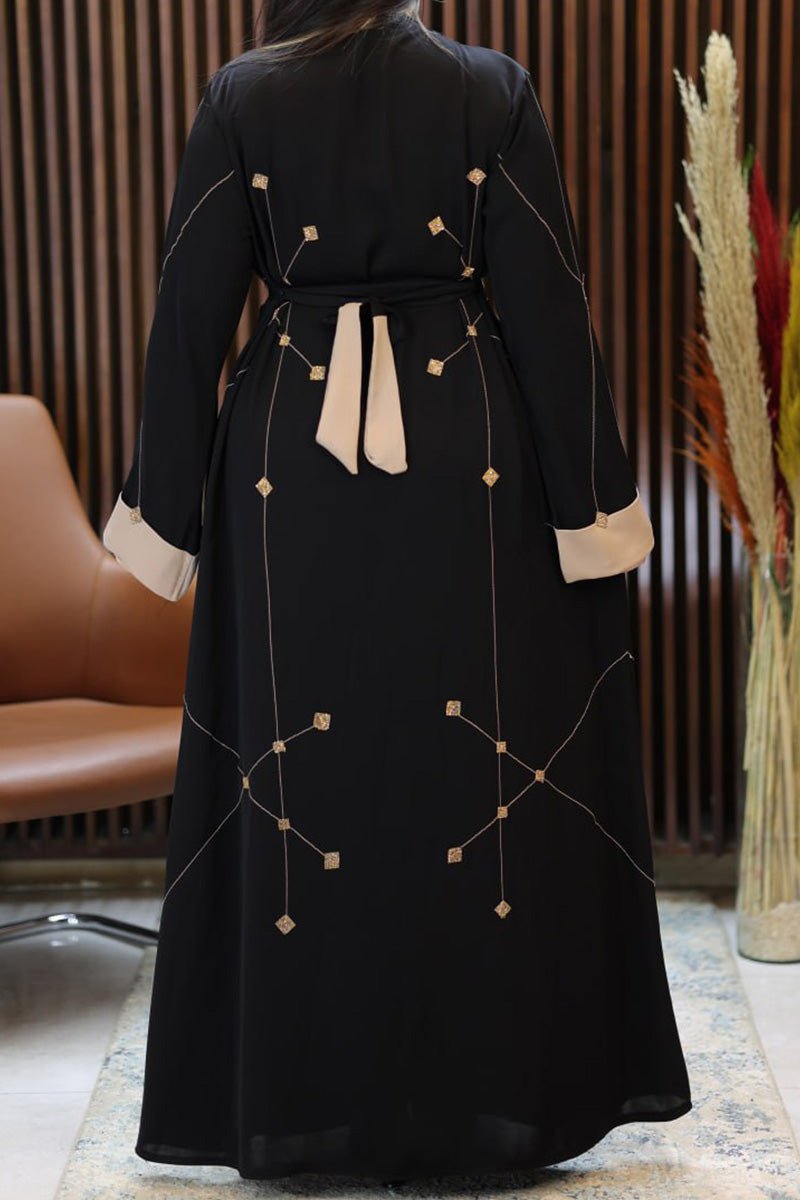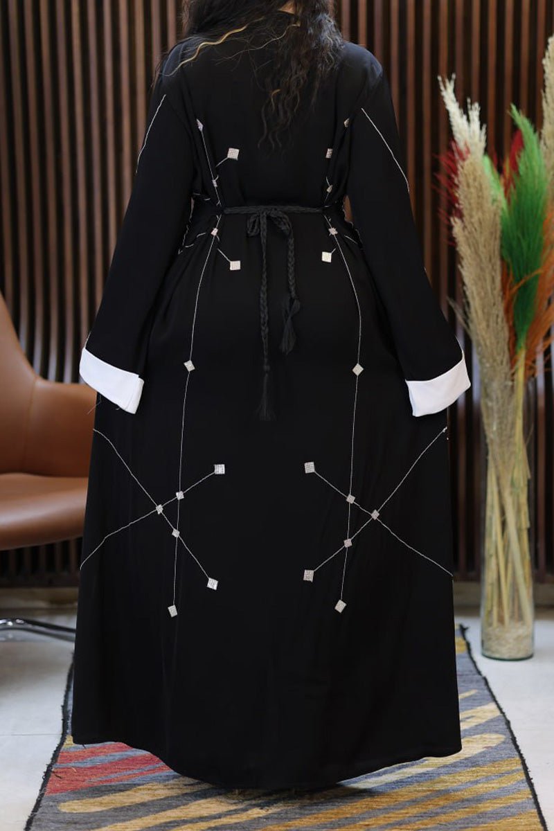 - العباية مطرزة علي الصدر والاكمام وبطول العباية من الامام والخلف