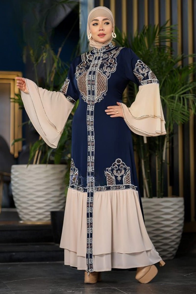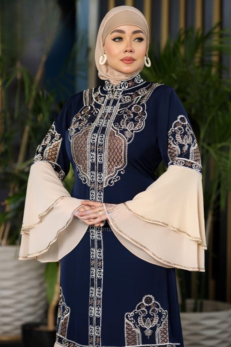 • التطريز : علي الصدر والاكمام وعلي ظهر العباية
