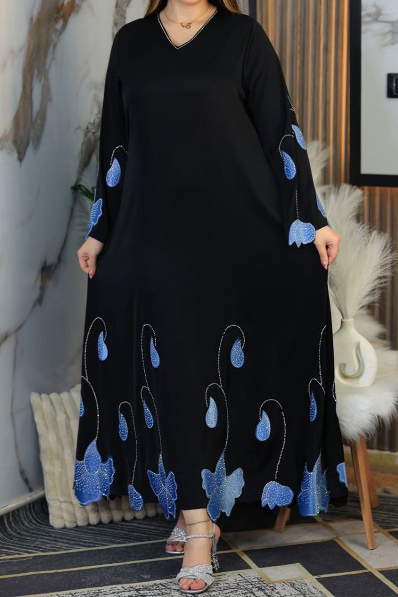 - التطريز : علي الصدر والاكمام وعلي ذيل العباية