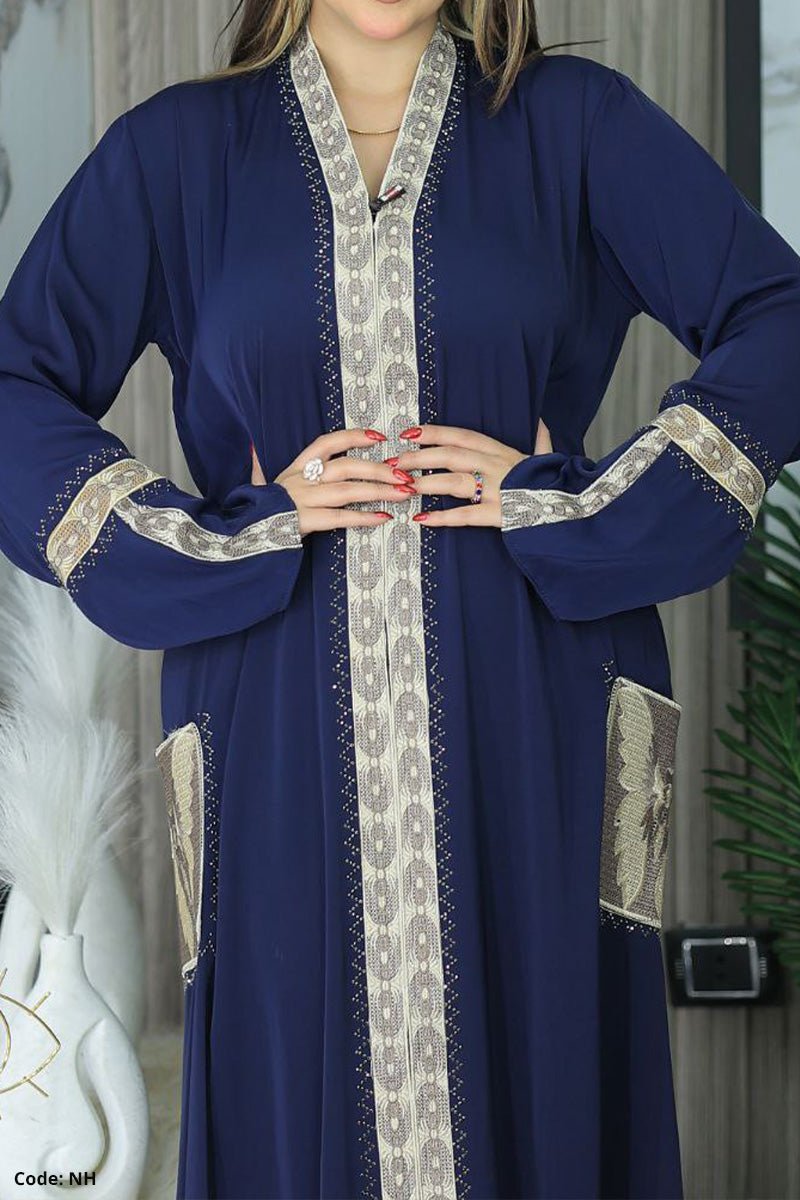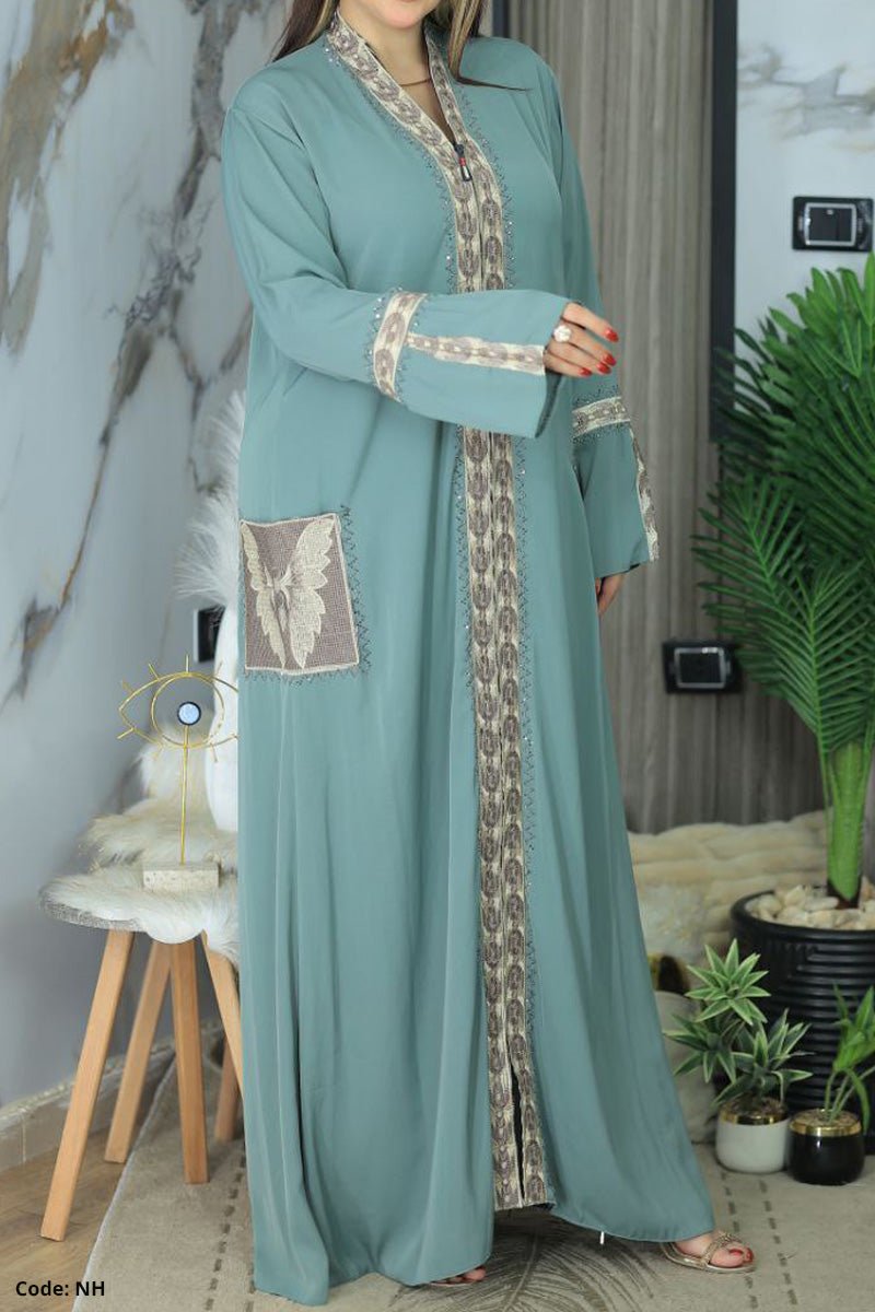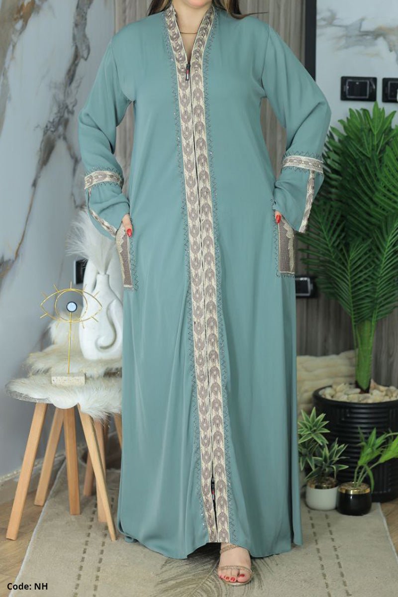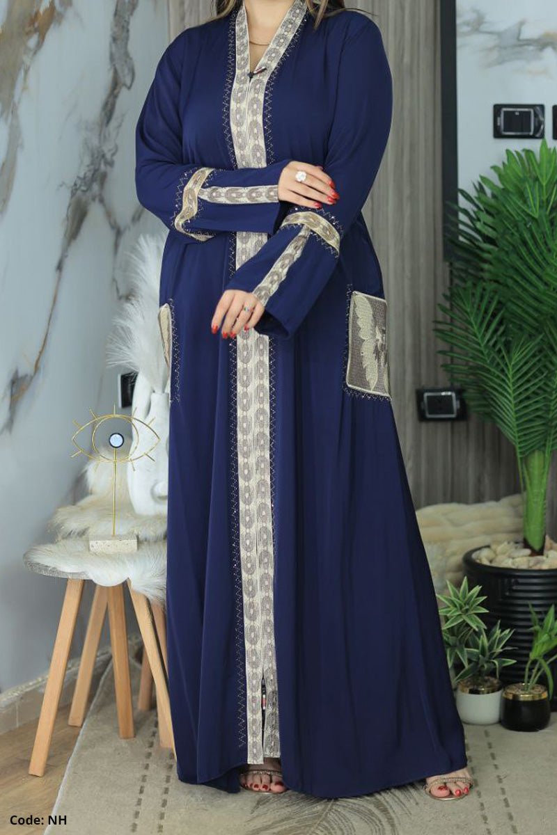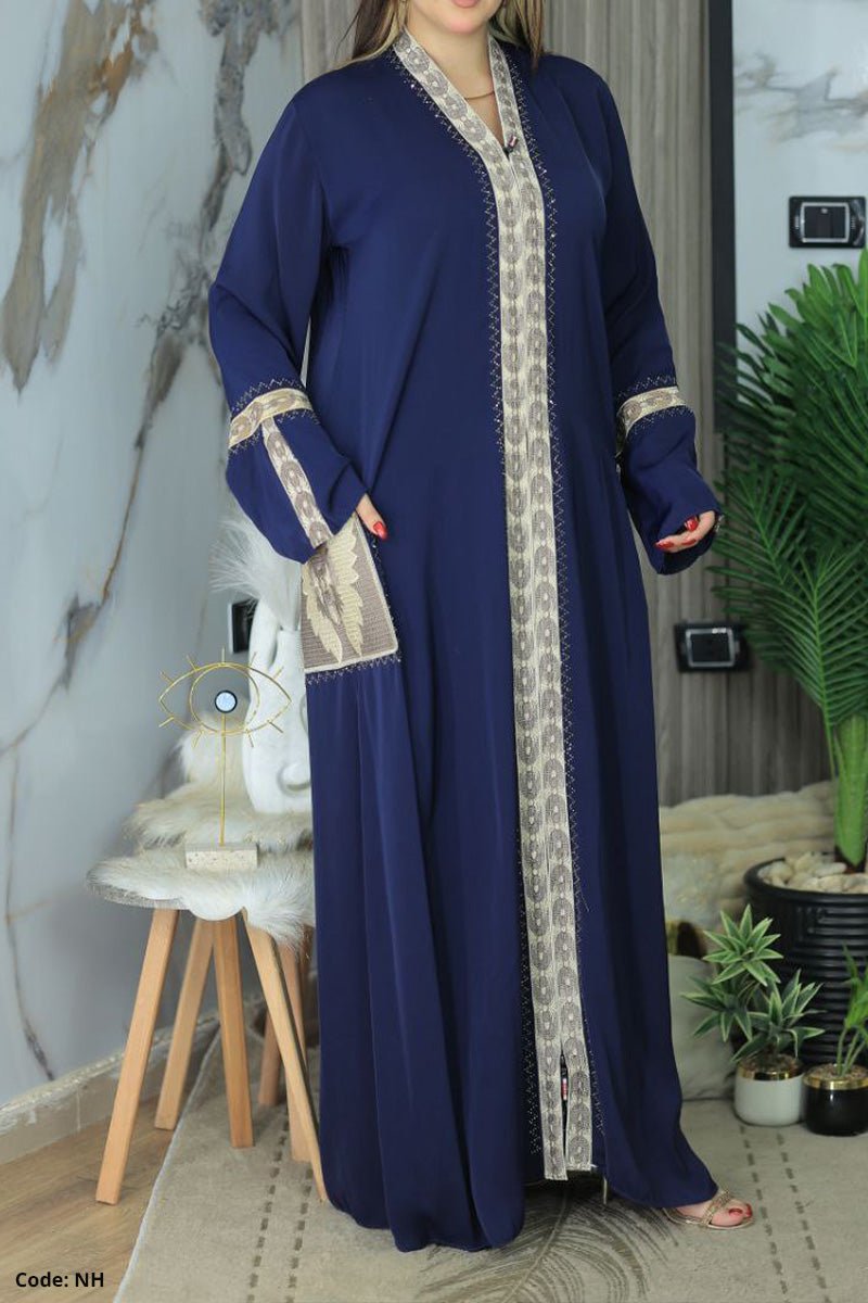 • العباية مطرزة من الامام بطول العباية وعلي الاكمام وعلي الجيوب