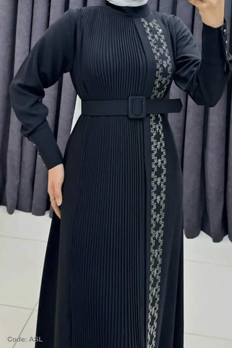 - التطريز علي الصدر والاكمام وعلي طول العباية