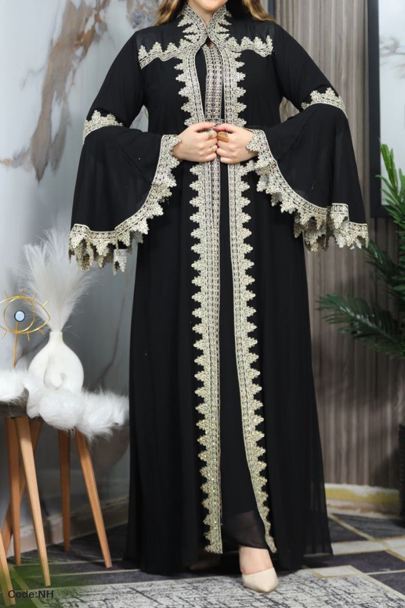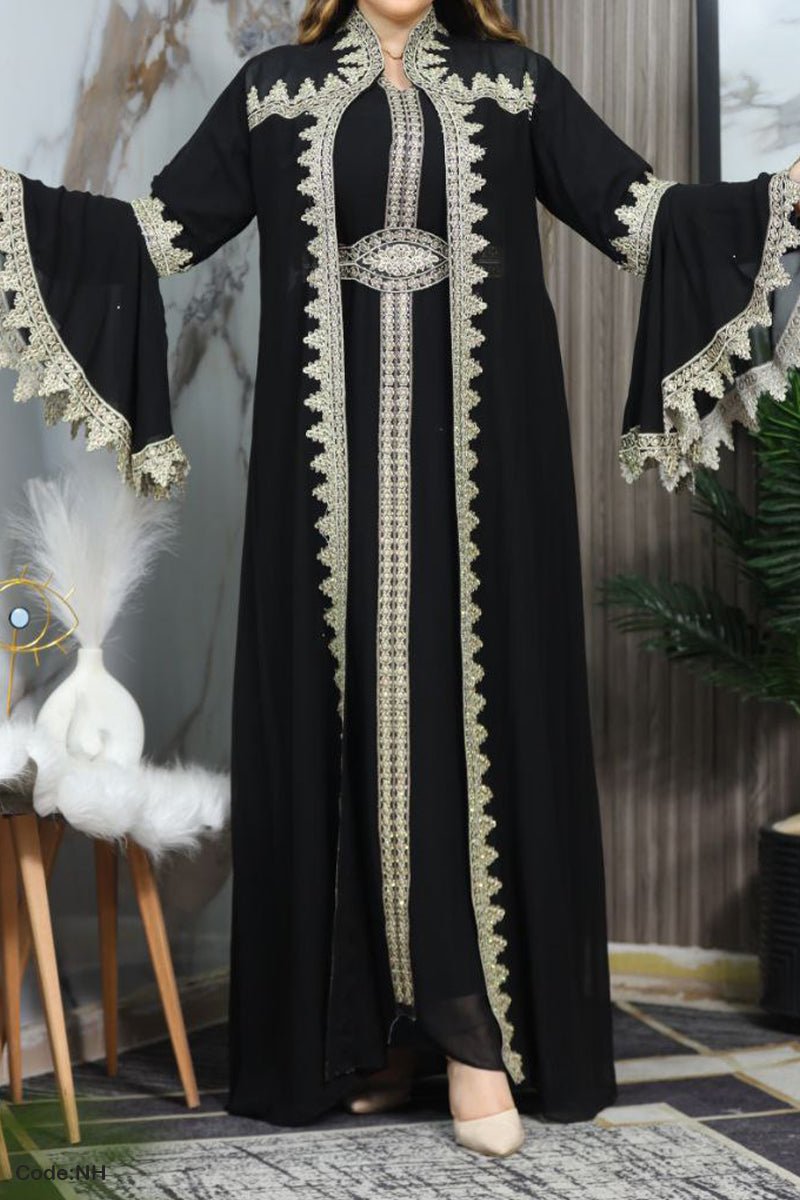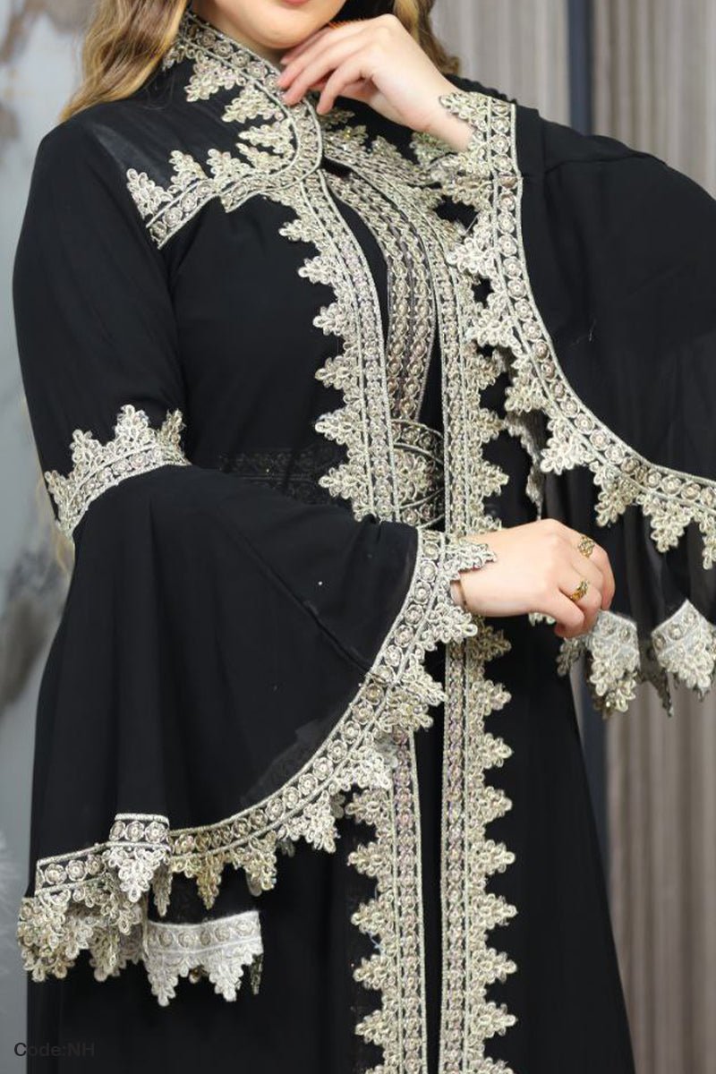 • التطريز علي  الصدر والاكمام وبطول العباية من الامام