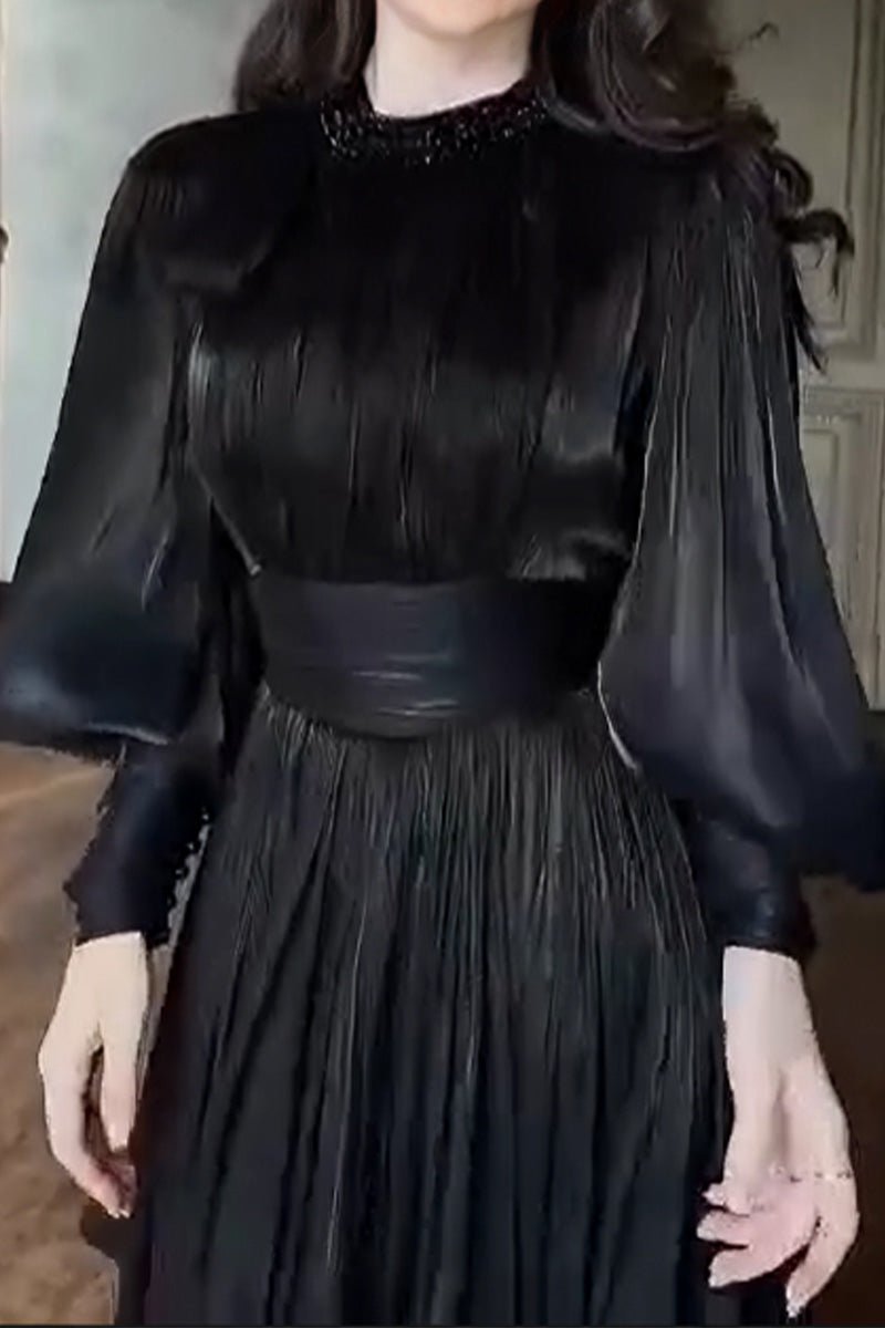 - الفستان واسع كلوش بحزام متصل عريض بضبط المقاس
