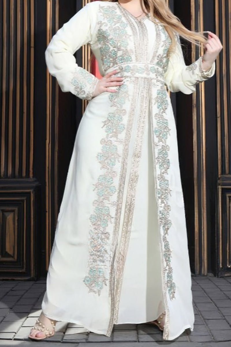 - التطريز علي القفطان بالكامل وعلي الاكمام