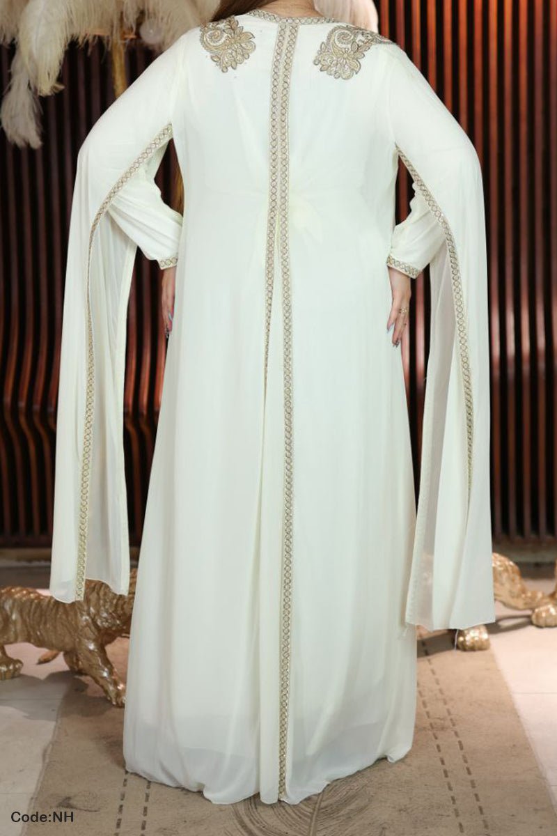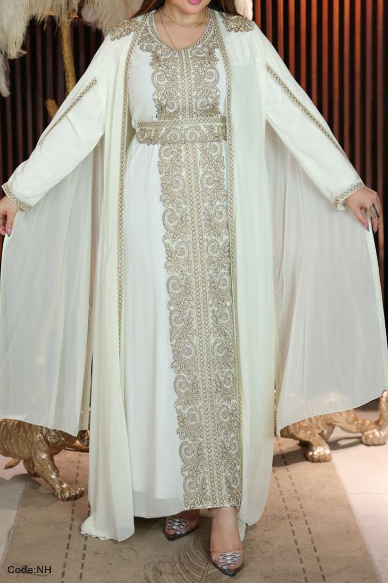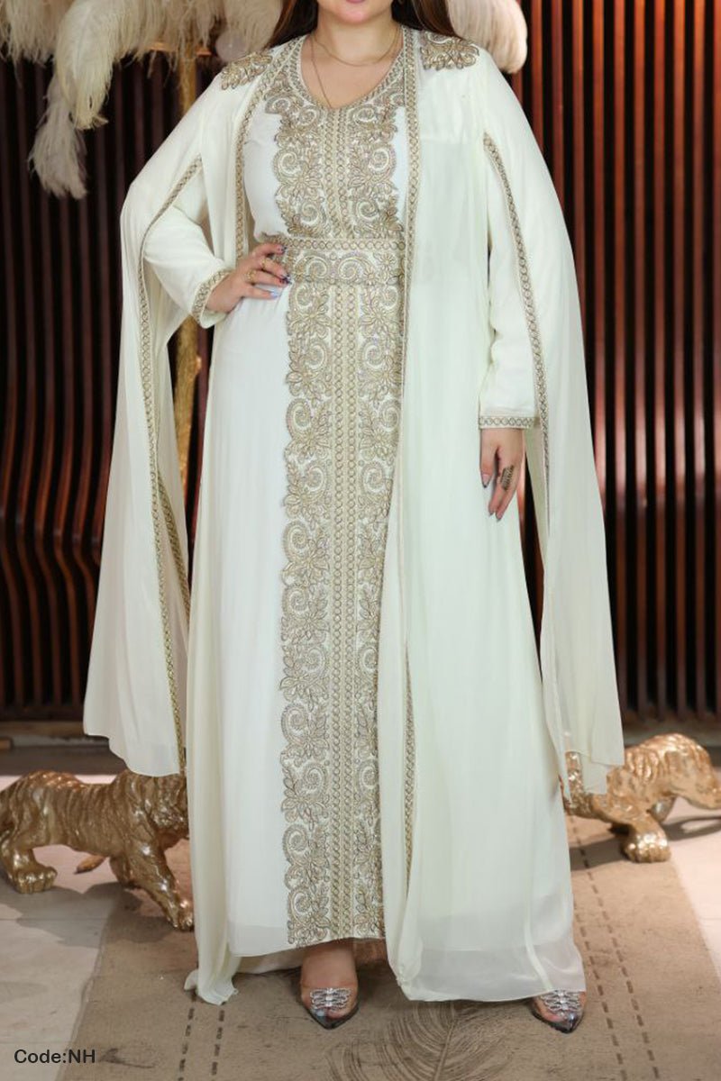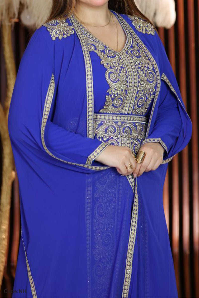 • التطريز : تطريز باستراس لامع وخيوط حرير ذهبية
