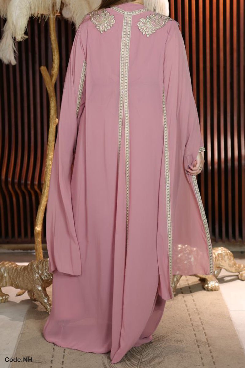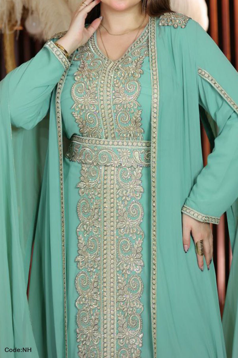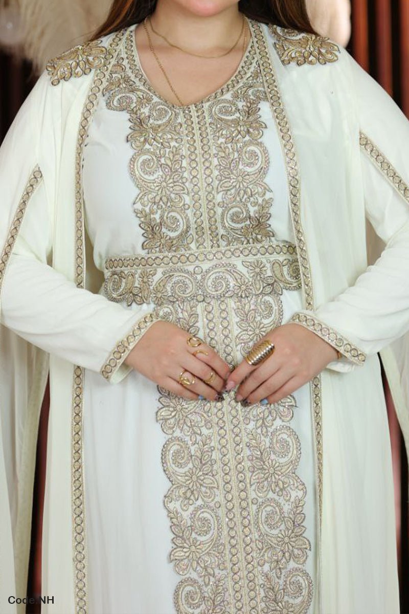 • القفطان مكون من قطعتين عباية وعليها وشاح