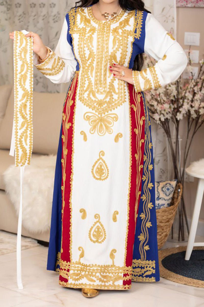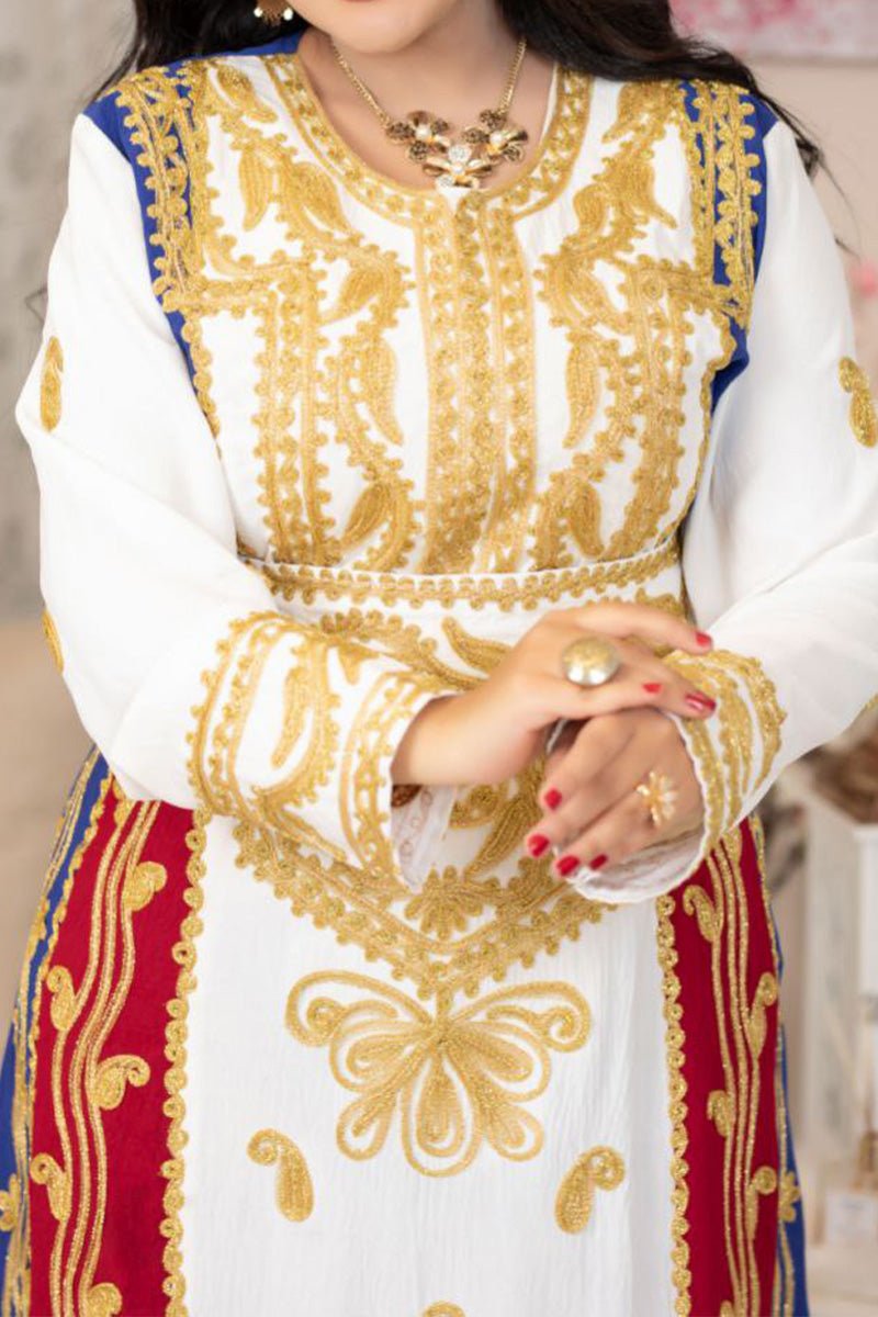 • التطريز علي الصدر والاكمام والقفطان بالكامل