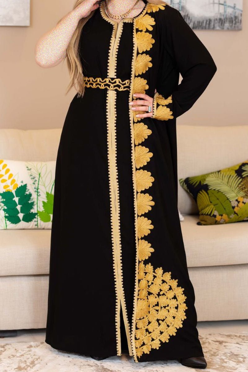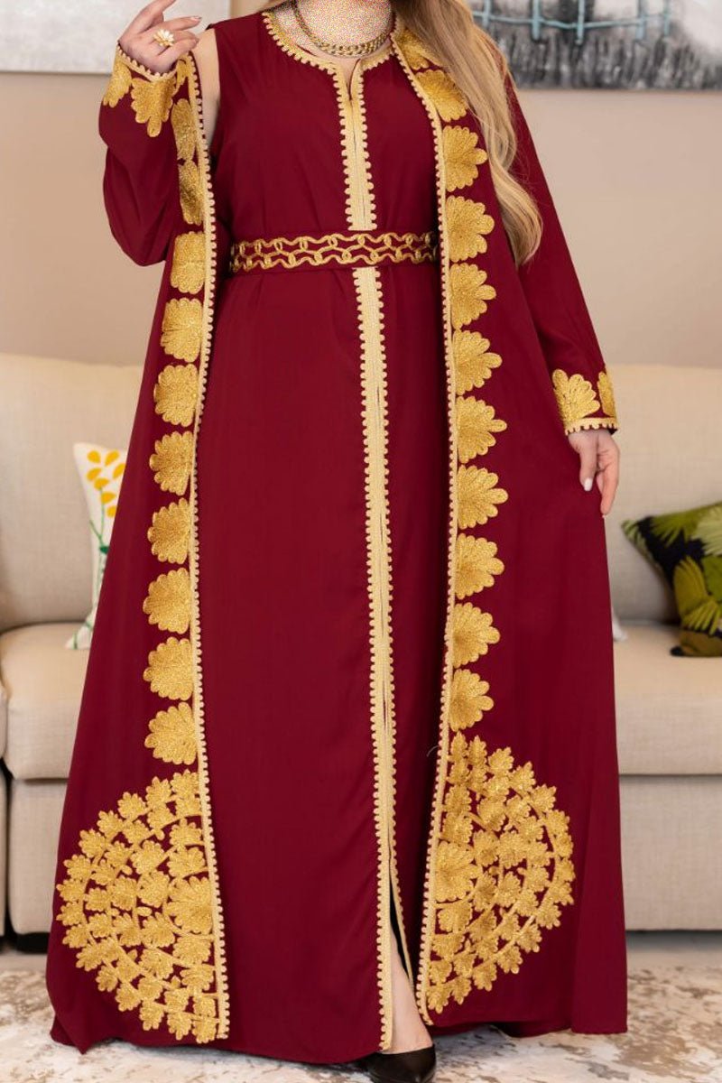 - القفطان به حزام خارجي من نفس التطريز لضبط المقاس