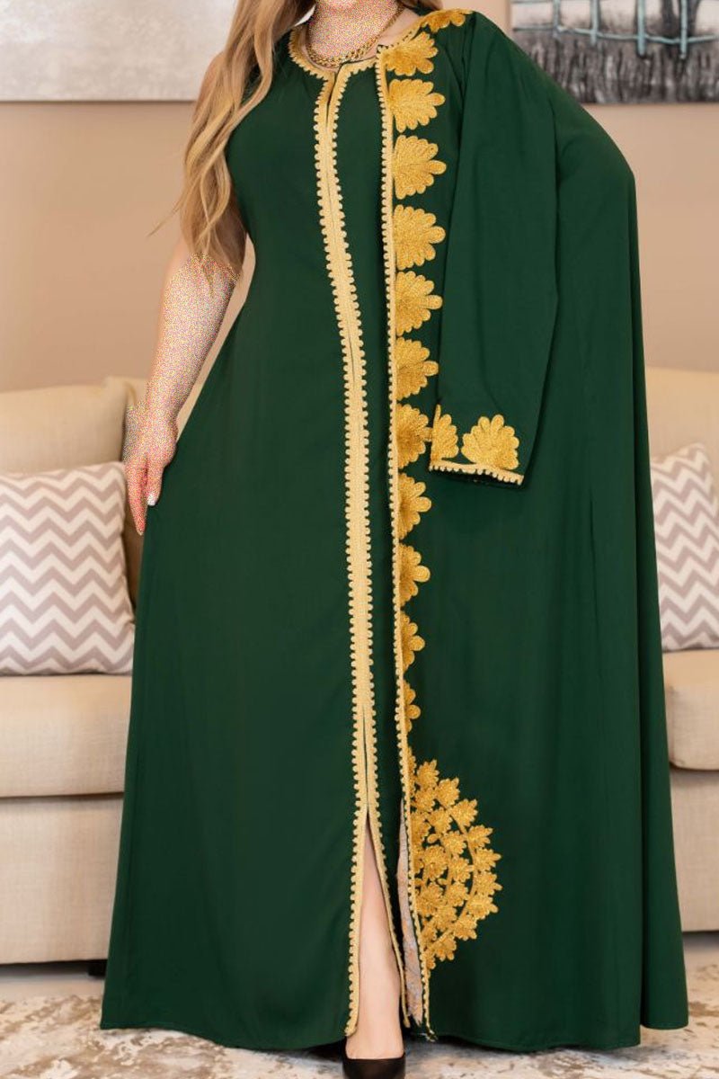 - القفطان مكون من قطعتين فستان داخلي كت مطرز بالطول و كاب خارجي مطرز تطريز كثيف